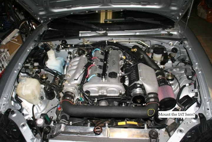 Without an IC it won't matter much, but I'd still put it near the TB for best readings. If anything it will be away from the header to minimize heat soak when you are sitting still or in traffic. Moves it to the cold side of the engine bay.