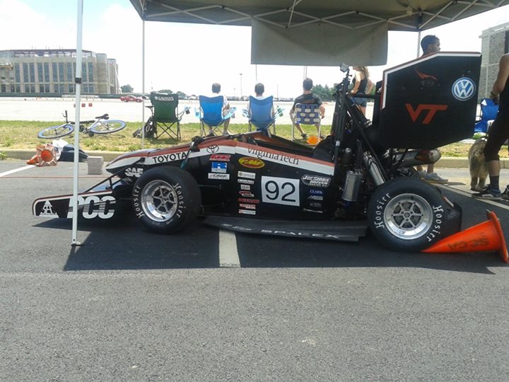 I went to the autocross at Virginia Tech yesterday and talked to the VT Formula SAE team. They were running both last year's and this year's cars. Here's last year's car.