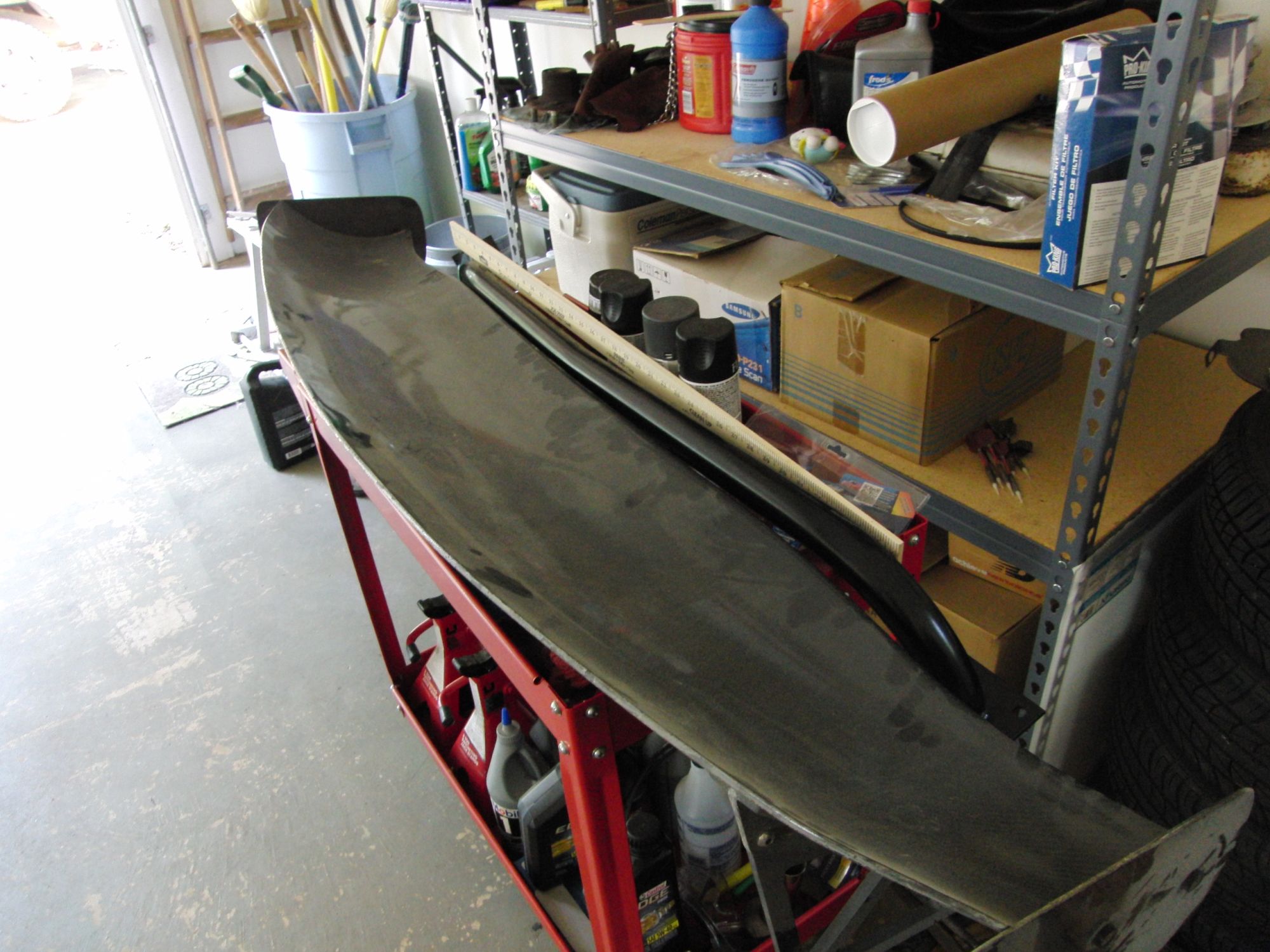 <p>Could that be done with a trunk spoiler? Like the lexan type. Some really strong springs, so it is upright at low speeds and pushed out of the way at higher speeds? Or would that fail?</p>