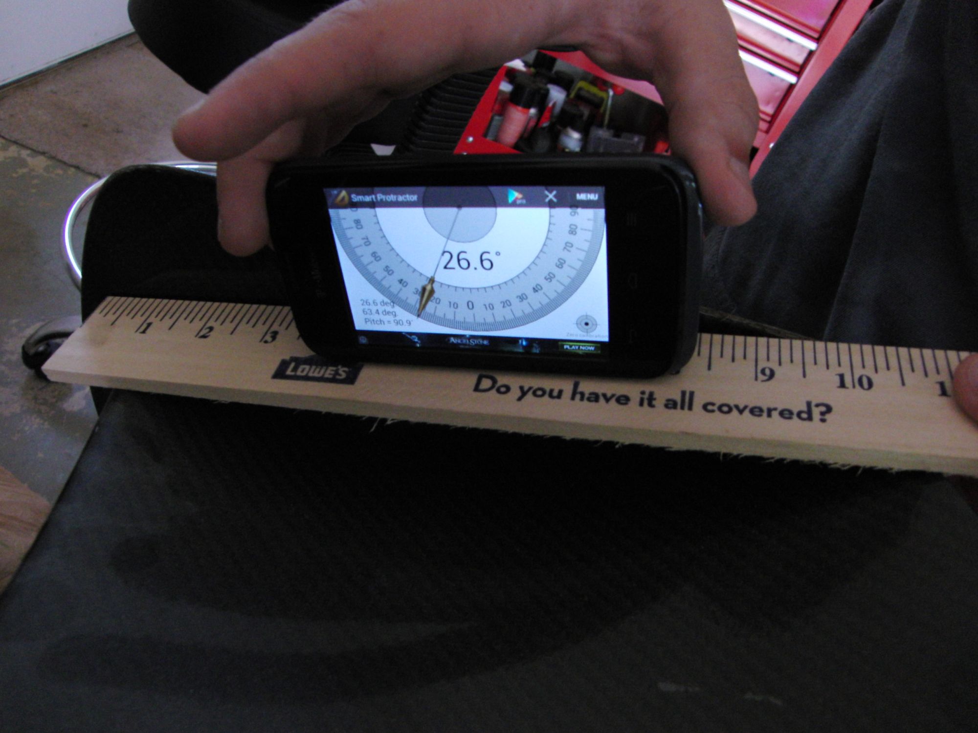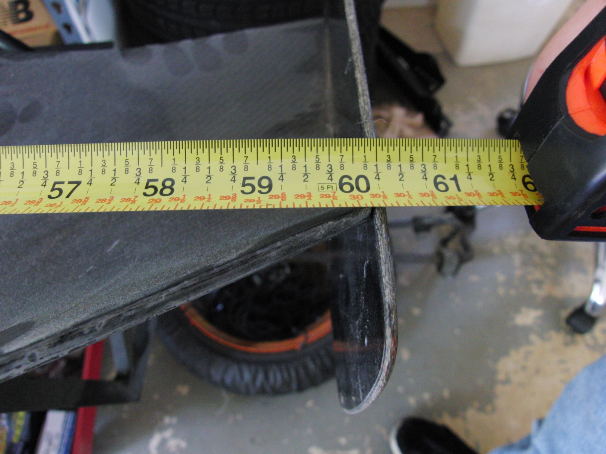 Just under 61" wide. Legs just under 47" apart. Difference in AOA from center to end about 16 degrees.