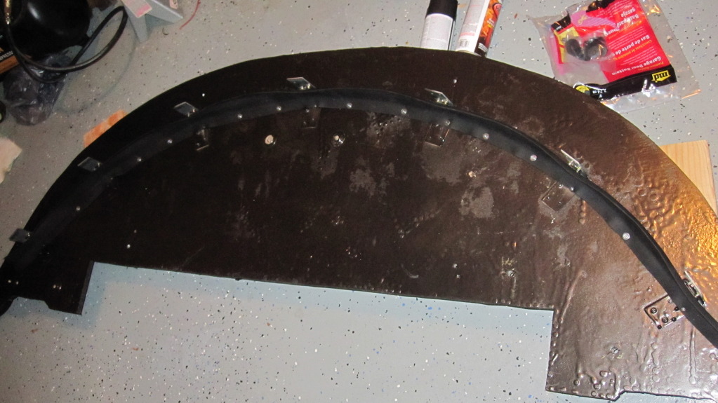 I couldn't find any L shaped garden edging at the local Lowes and Home Depot, so I used garage door weatherstripping to try to seal the bottom edge. Connecting the abs to the splitter I used Dzus fasteners. The top is just 3/16" rivets.