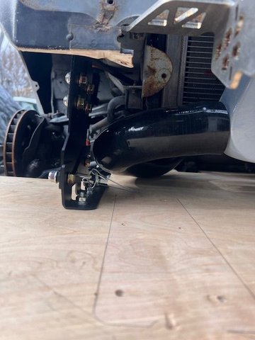 originally I got the new nine lives quick release brackets but was going to have to cut more than id like to clear intercoller pipping. so I followed somewhat of what @Fireindc did and thought id post an update. i bent the brackets back straight and drilled two holes in the frame and used the hardware it came with. clears the FM intercoller piping with room. and feels very solid. need to add support to sides as well as the front but overall happy with how it came out