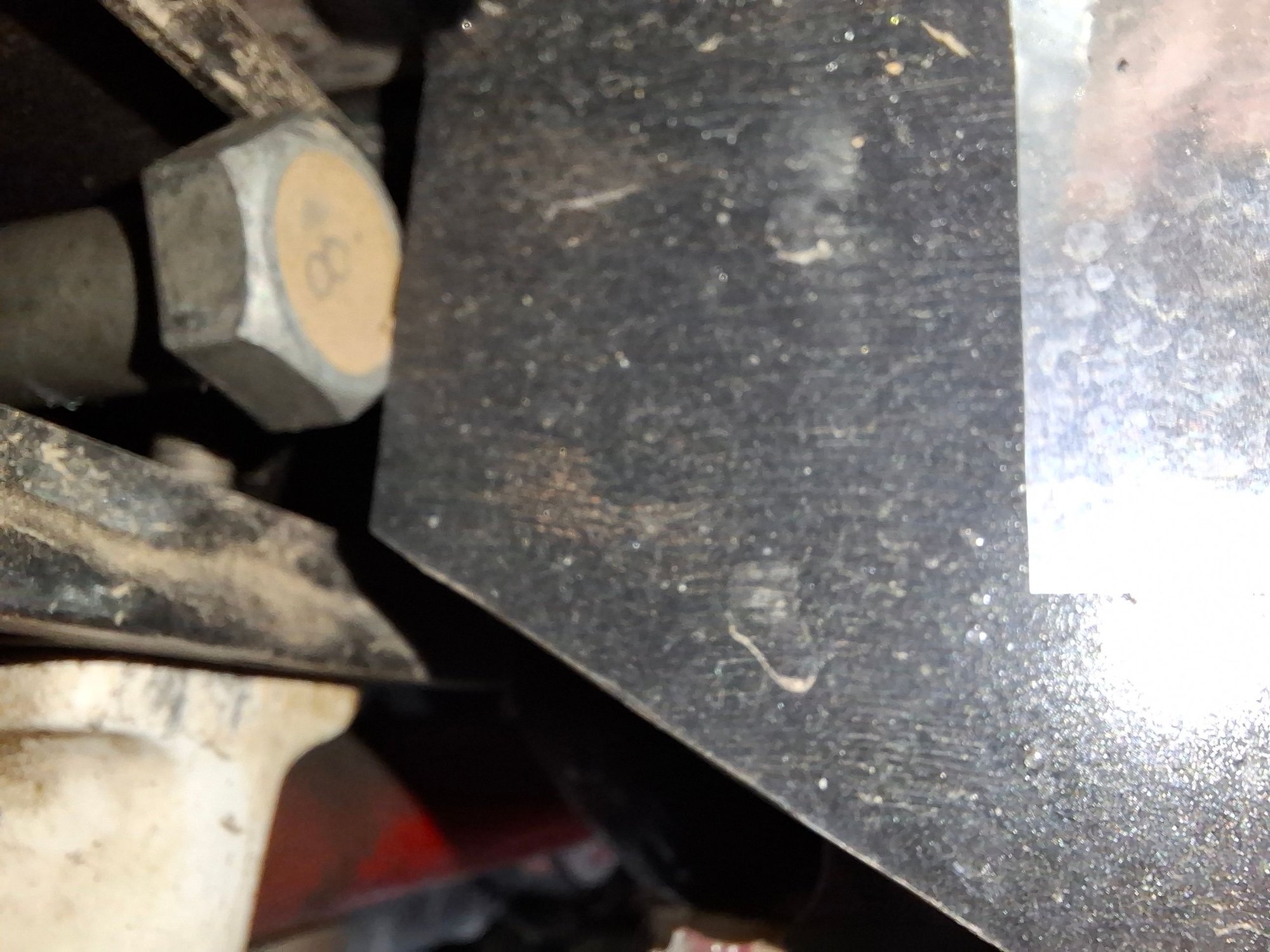 This photo shows the head of the bolt contacting the rear of the blade bolted to the chassis rail. This is the rear of the blade shown inverted in the above photo.