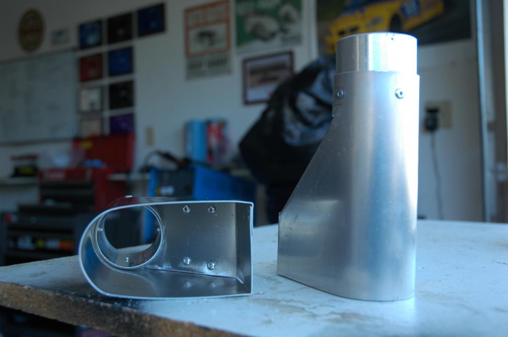Materials used: Aluminum sheet, 2" aluminum intercooler piping, rivets