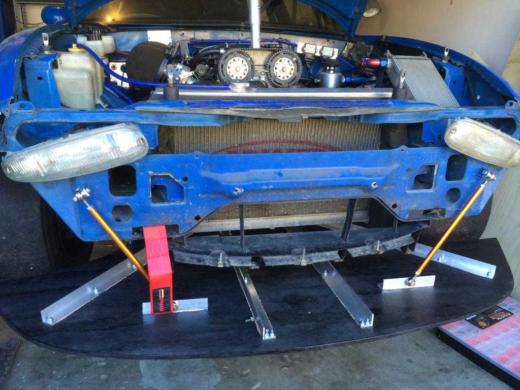 It is made from a very thin-walled 3/8" box tubing skeleton, and a 1/16" ABS skin that is riveted on. Seams are sealed with black silicone where necessary. Rivnuts hold it to welded tabs on the radiator end tanks.