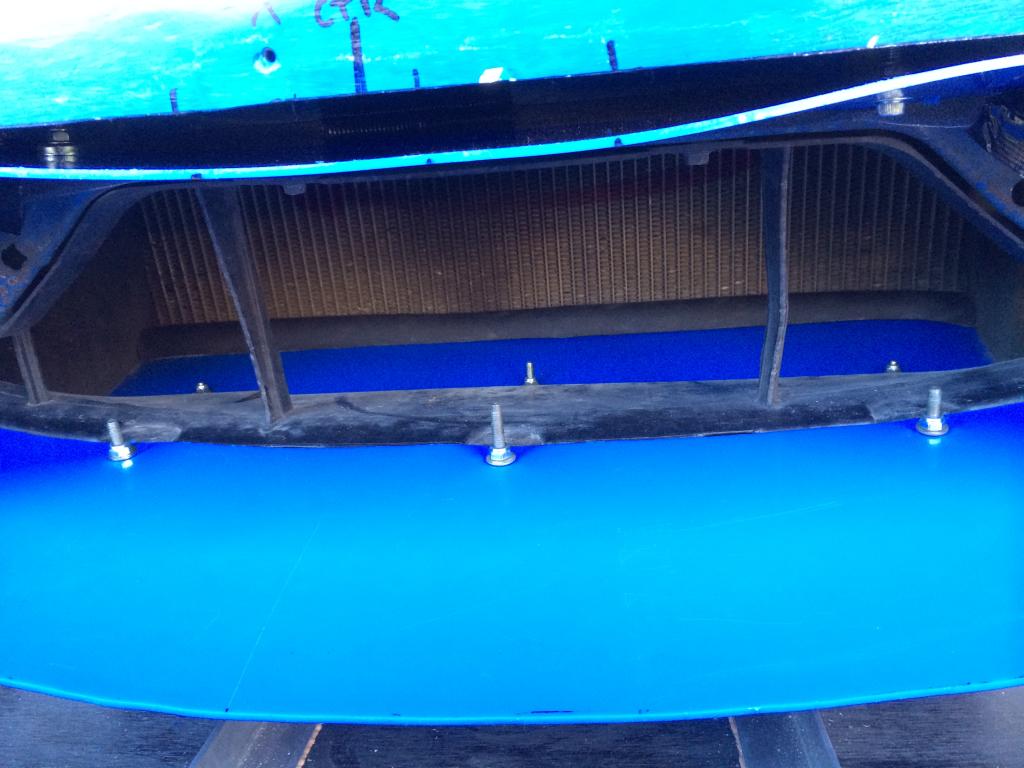 Used OEM radiator guide and shaped up additional plastic ducting for the radiator out of the leftover Speedway plastic. Used some rubber door trim I had lying around to seal it.vim a bit concerned the gutter mesh might be a bit dense and not let enough air through for cooling, but we'll see next weekend when I test.