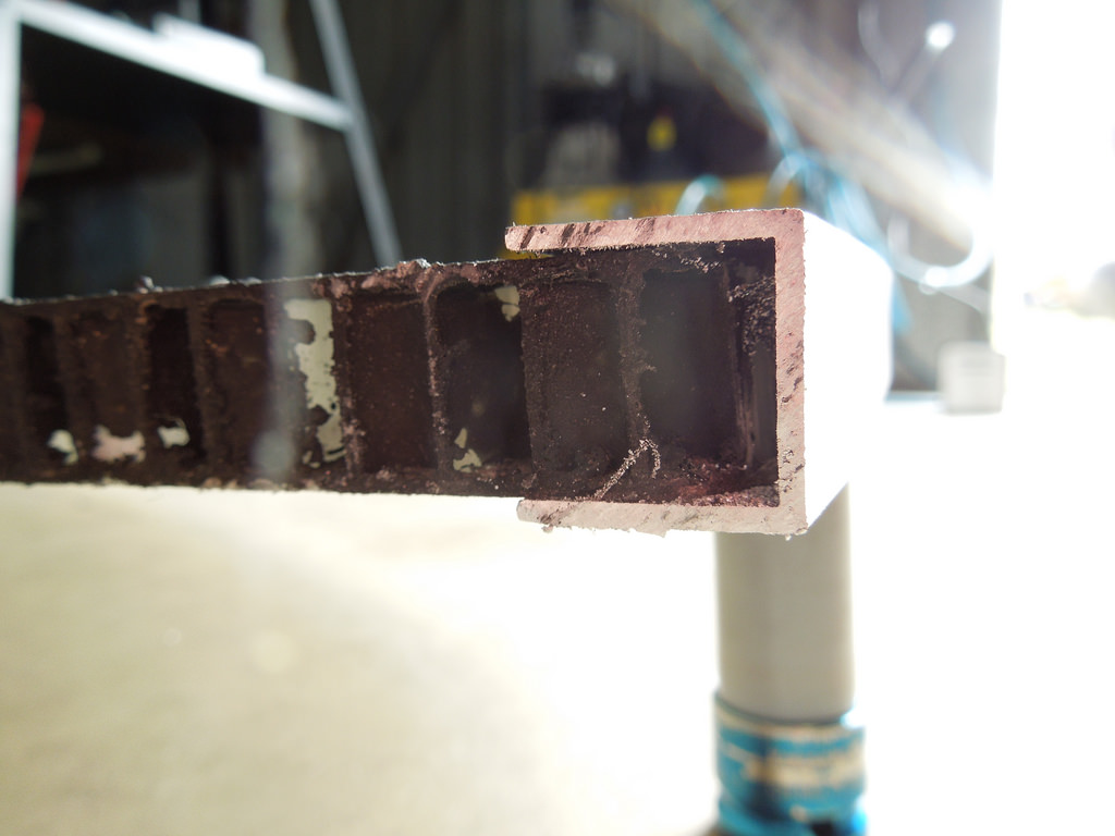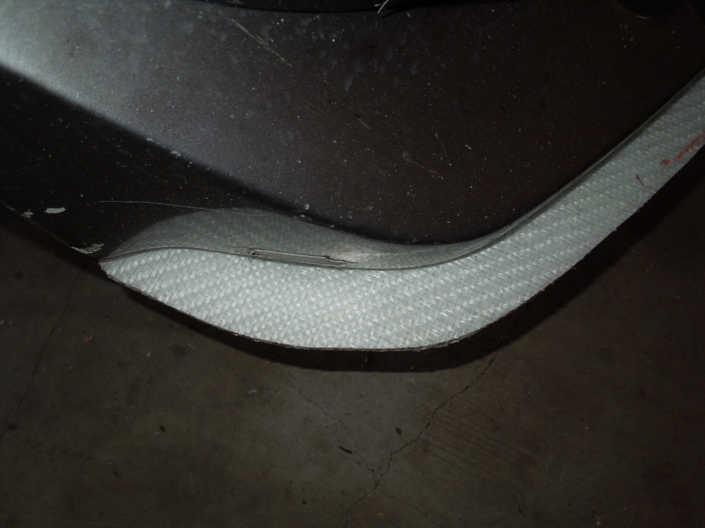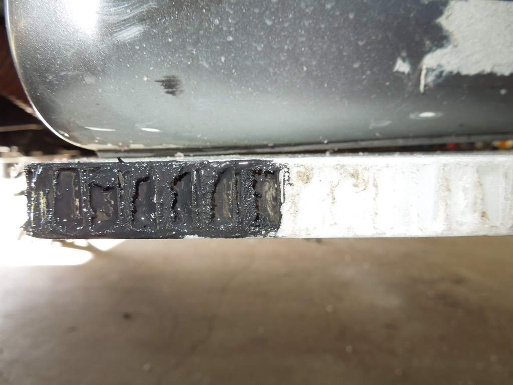 Close up of edge after a bit of a clean up. Started with a die grinder, not very effective. Then a 3" grinder that worked a treat. I used more clark rubber foam to fill up the air gap. A more permanent solution is needed, a work in progress. The gap is caused by the GV Lip not being perfectly flat/level.