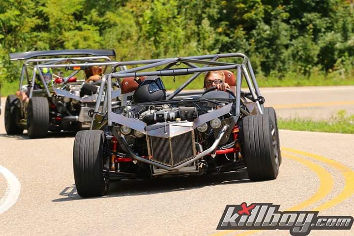The car infront on the picture earlier is a lancer evolution which had its body cut off and a 205 T16 Group B body but on, its 400bhp 4x4 and weighs 1000kg.