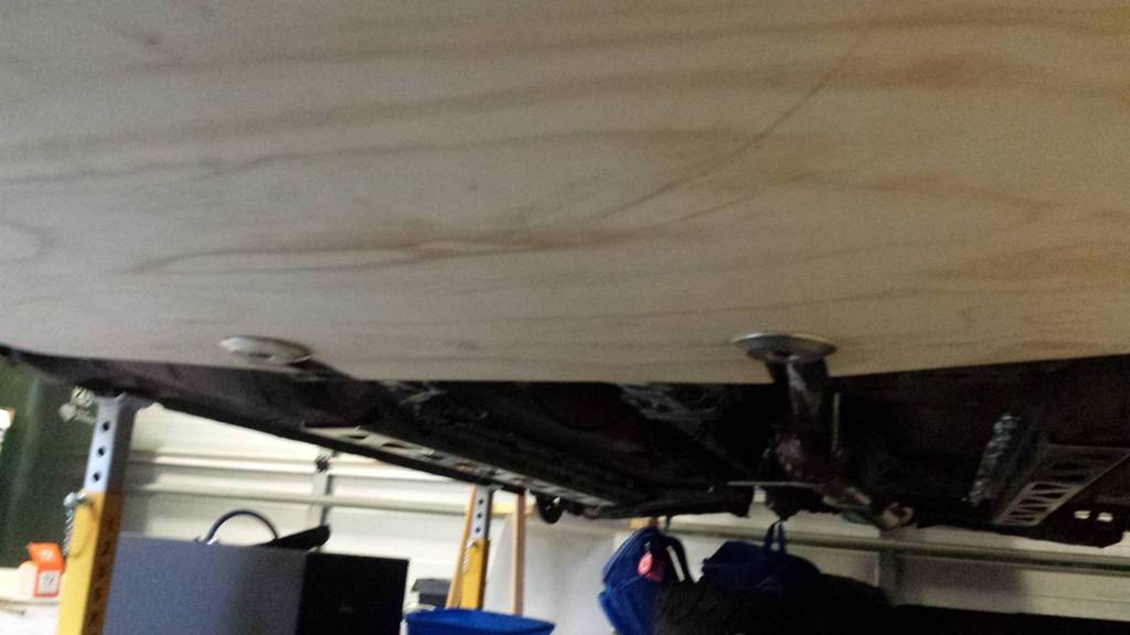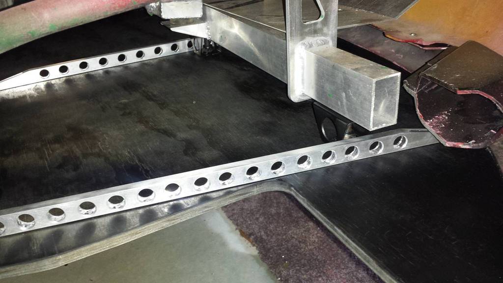Slotted keyholes cut into the back end of the splitter that slide into mushroom bolt fixed to the subframe. These help with easy installation / removal whilst the car is on the ground. It's very solid in the forwards direction so will transfer any frontal impact to the subframe before destroying the splitter. This helps protect the nose / oil cooler/ radiator etc