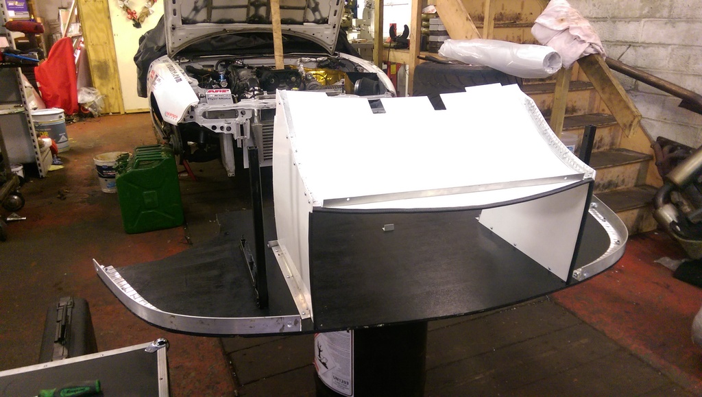 My answer to a question no one has asked; EZ on-off splitter, steetable track car. Basically I don't wanna have to buy a trailer so...The 4 front elements nest together and fit on the parcel shelf for transport to and from the track.