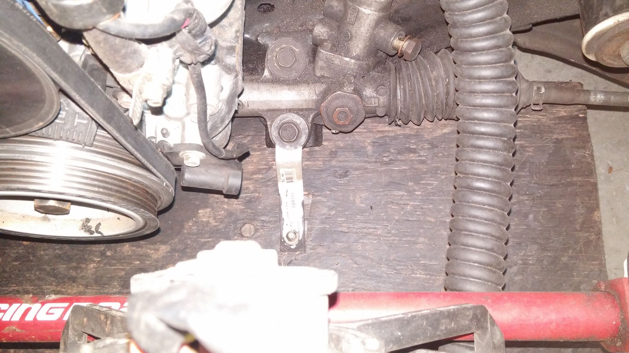 It's mounted at the rear where the stock under-tray bolts go in. You can barely make out the holes outboard of the cut-outs at the rear which are to clear the plastic scoops. The front is supported by 2 drop rods, passed thru the frame rails on either side of the radiator, that go into the t-nuts just outboard of the Tig-welded "X". The brace needs to be redone as it is nowehere near as stiff as I had planned. Gotta road test it first though...