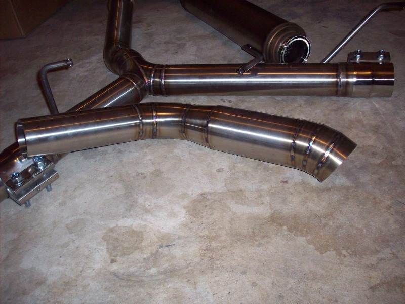 Dual 2.5" exhaust as requested by the customer. He was well aware of how loud it would be w/o mufflers.