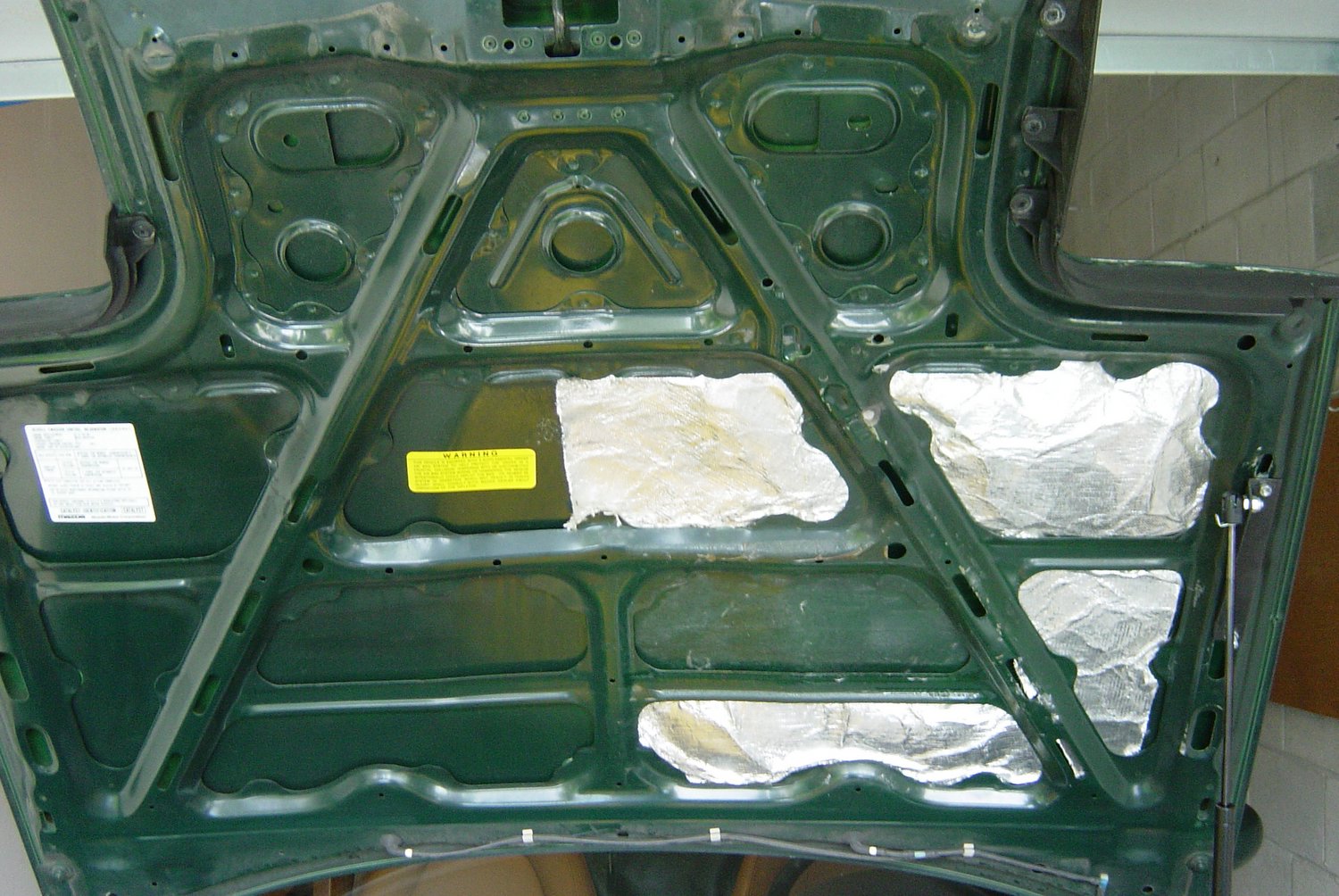 - Heat shield: (reliability, ~$50+) Despite all the heat blanket that you used to protect things in the engine bay, that turbo is very close to the hood and a few old owners have had their hood paint wrinkle/warp from the heat. You can go as simple as a cake pan bolted to your hood as seen here with extra heat wrap, or choose the Bowser heat shield from FM here, or make a DIY heat shield. Also, some people have added extra hood protection by cutting heat blanket slightly larger than the hood open panels and sliding the extra blanket under the hood supports to stay in place as seen here.