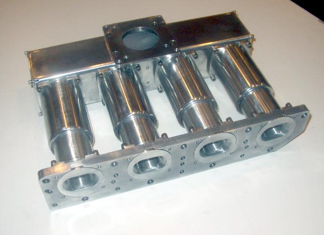 I don't like those runner conversions from round to oval in what looks like a half inch, thats not going to work well. I've thought and thought about adjustable runners, but there just isn't any great way to do it I don't think. Its great for setup and testing, but you can't taper the ports if you use adjustable runners. I'm interested to see what it does on the dyno anyways. It looks like the nightmare I was facing making a manifold out of a CNC machine. Its too much time and material, when you can just use a fiber reinforced plastic and do it for cheaper, with unrestricted geometry, and at a lighter weight.