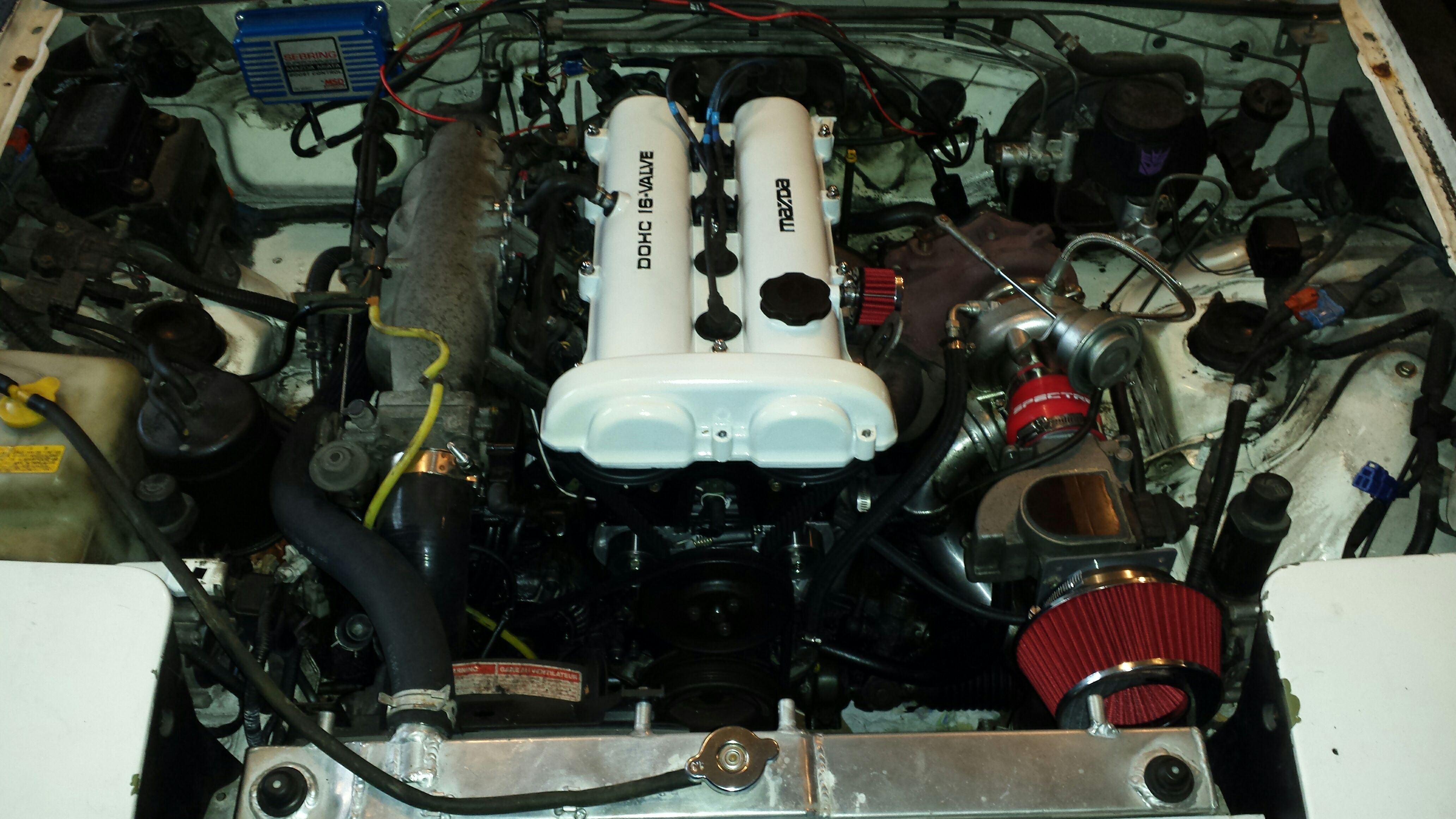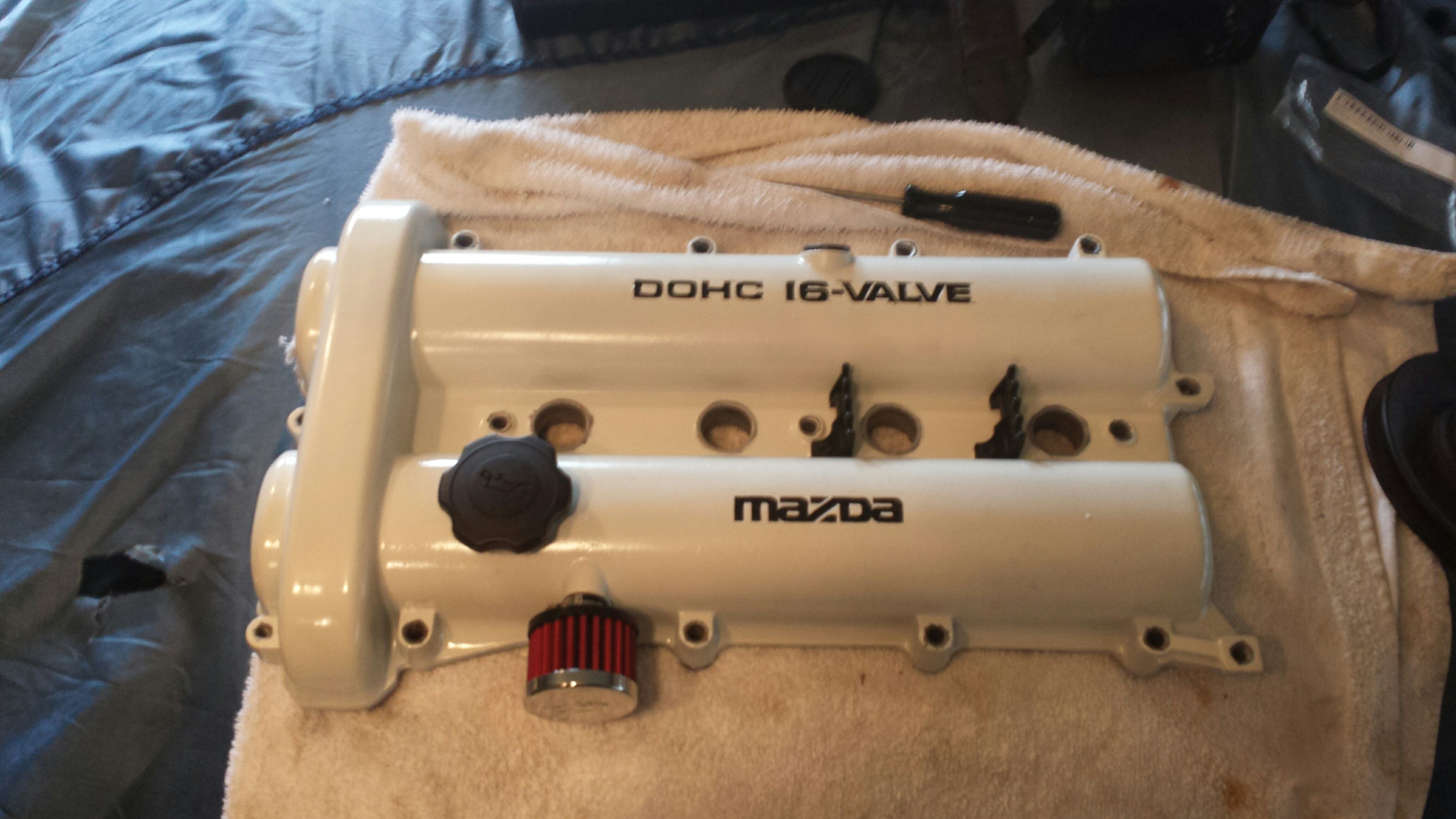 The under hood theme of this car is going to be white, black and a splash of red, so my friend painted the valve cover.