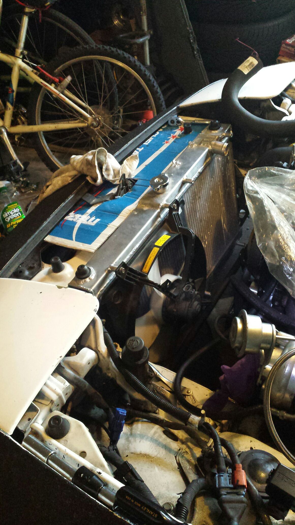 Still some things to do, the top of the rad is held by zip ties, as is the intercooler since my friend had to move it a bit to clear the new rad.