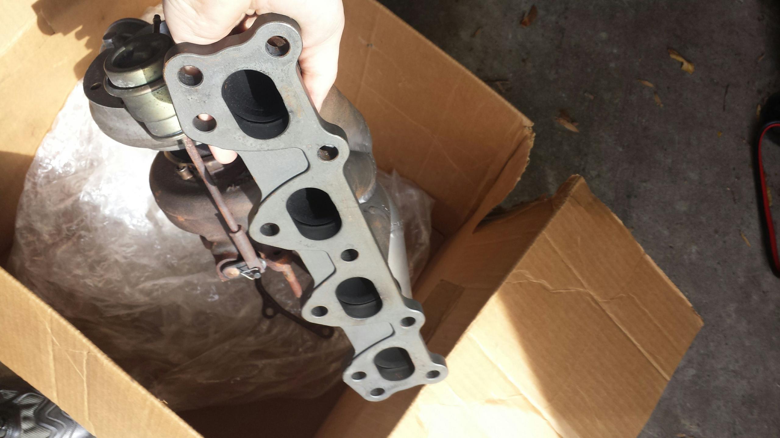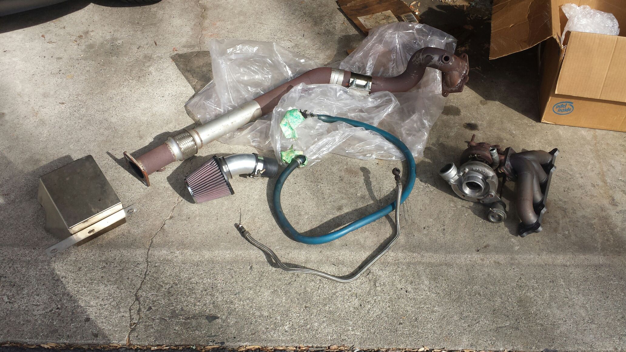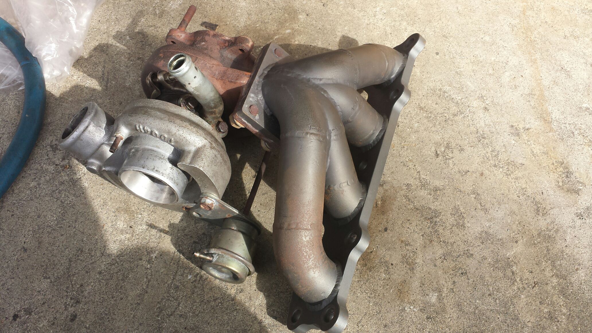 So, a Greddy kit popped up local. Blurry/darkish phone pictures for the add and all that. Manifold, TD04-15G, downpipe, intake, heat shield, and oil lines. Guy wanted $300. Didn't look that rusty from what I could see in the pictures. I told my friend to go take a look, since it would at least be better than the Chinese stainless steel tube manifold on there now. Figured some relief cuts and it would last decently.