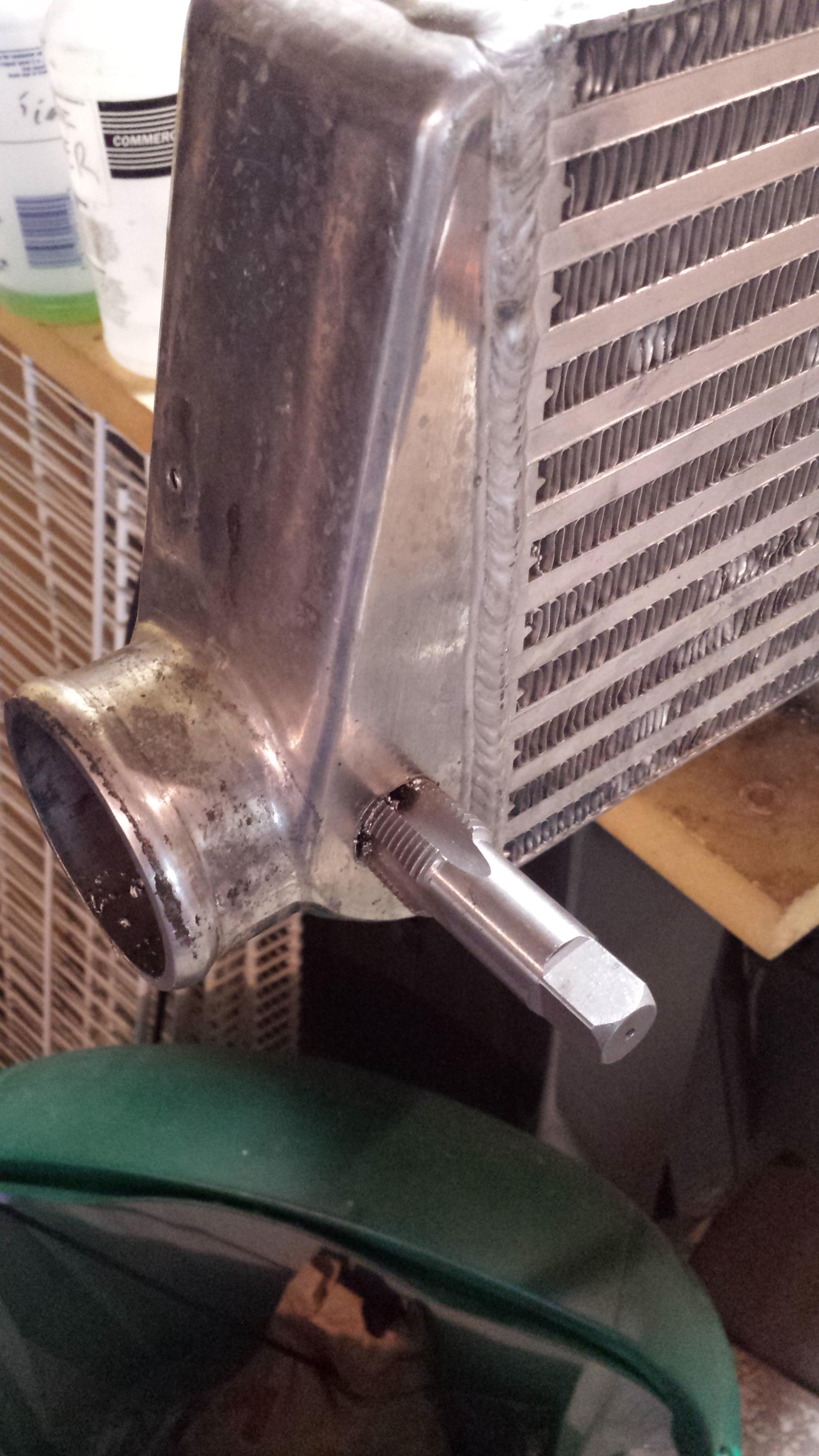 So first we drilled and tapped a large (1/2" NPT) hole.