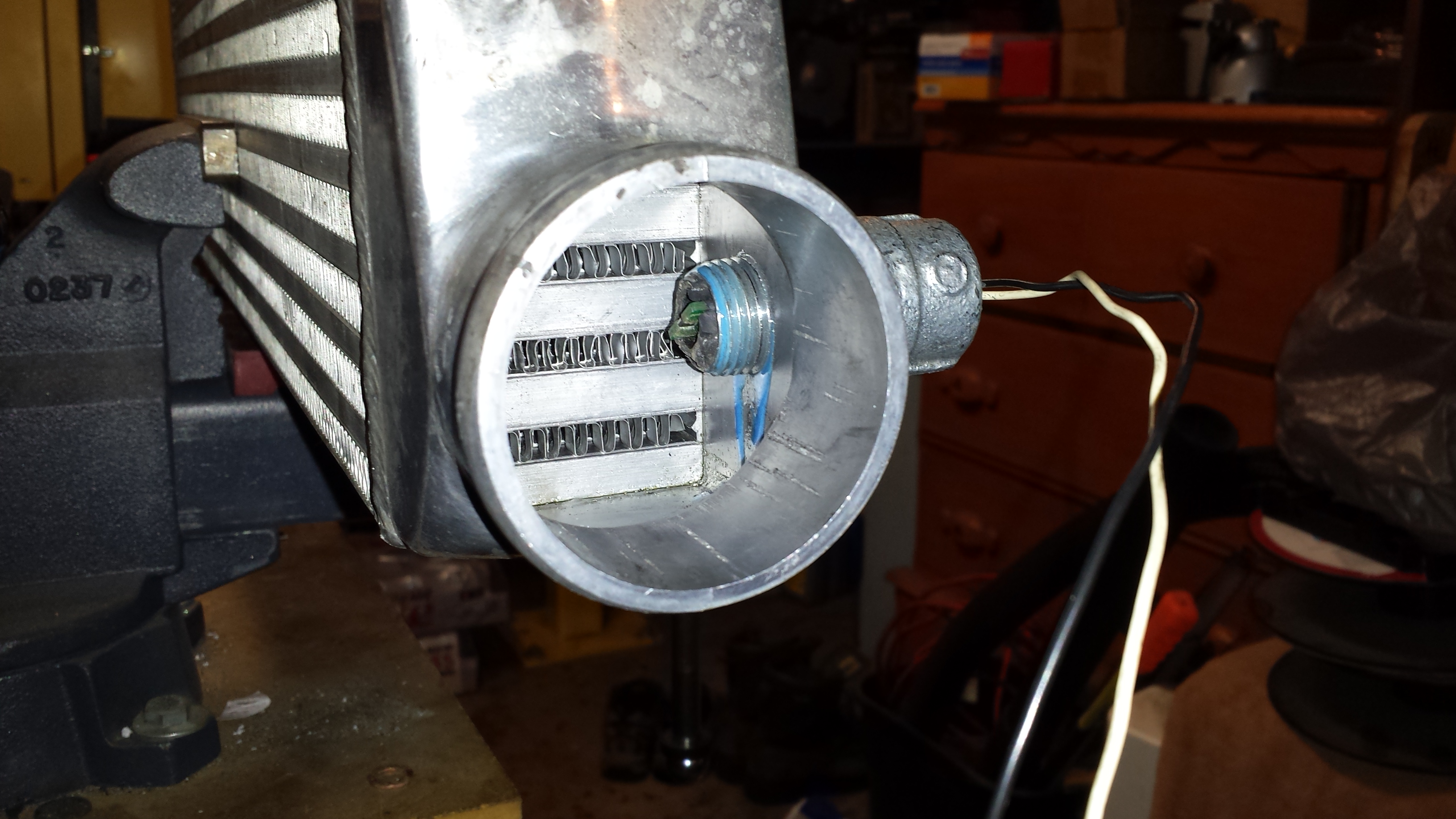 Speaking of those, I made a modification to the IAT so we can install it easier. a 1/2" NTP Male to Male pipe fitting and pipe cap, some big heat shrink, a bit of the old valve cover and bam, protected IAT sensor that we can screw into wherever we want. Probably the end tank of the intercooler, there is no other metal I feel reasonable threading between that and the throttle body. Also, the sensor would just have to be tugged lightly and then have the heat shrink cut off and it would be 100% back to normal, no permanent mods and it is suspended all with flexible material to not have to worry about heat stresses.