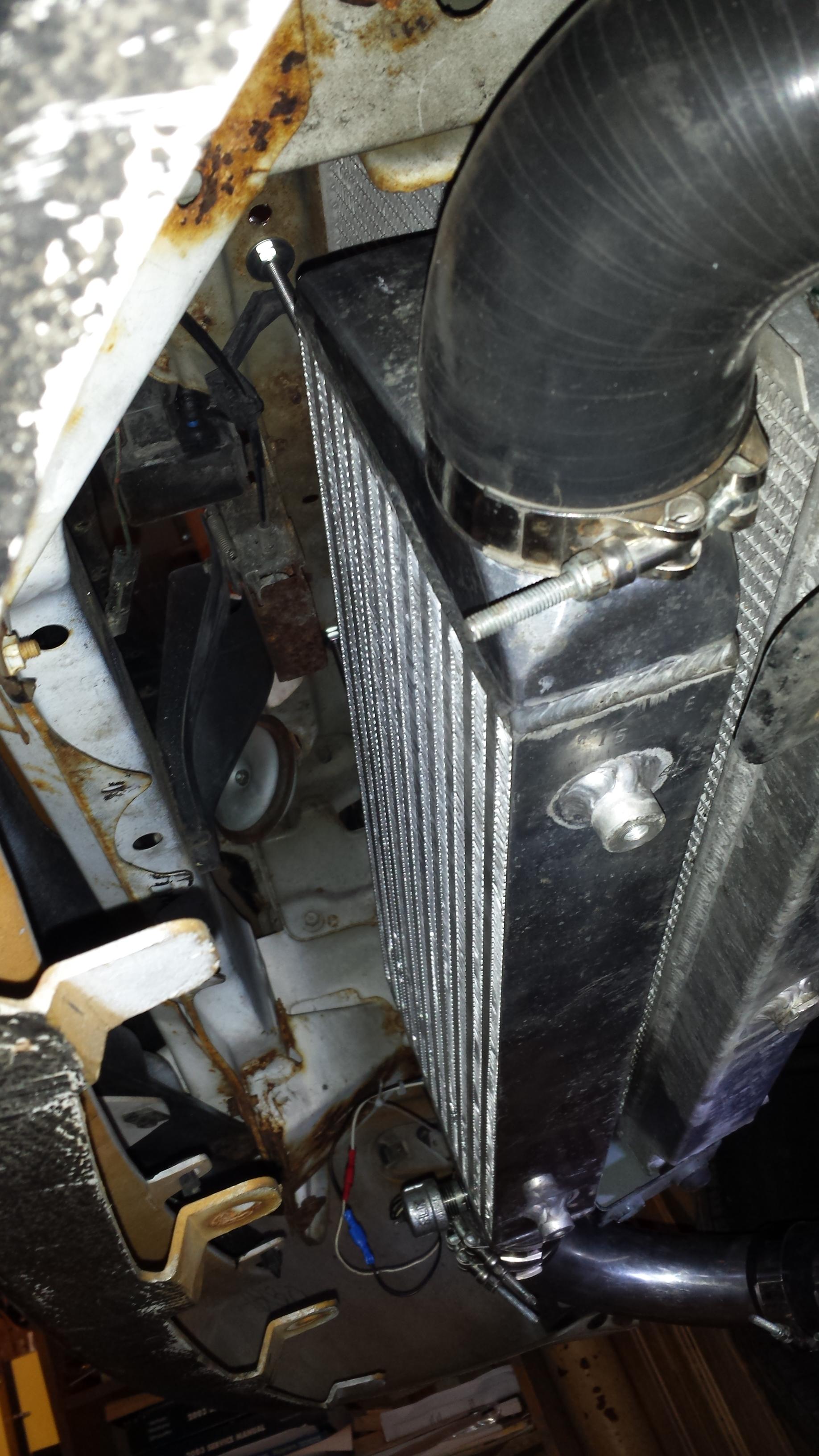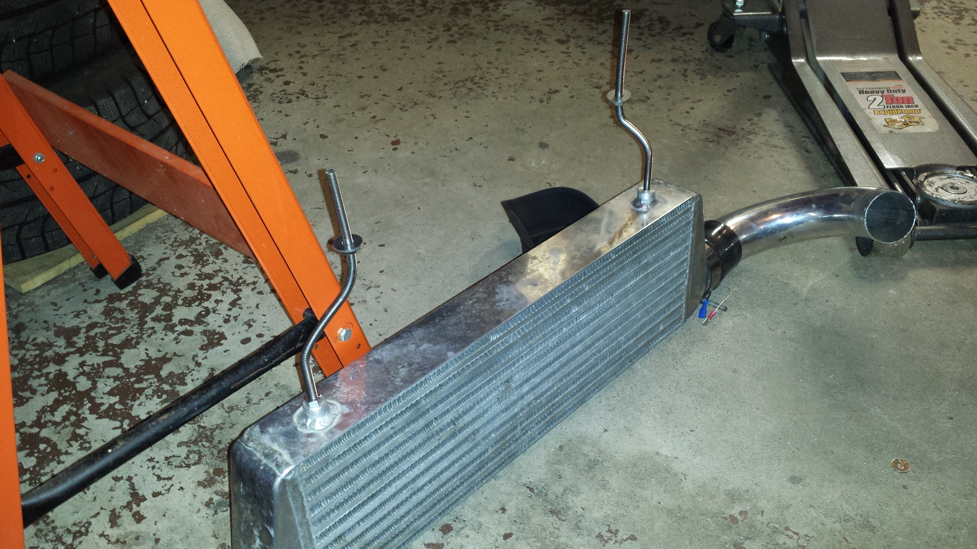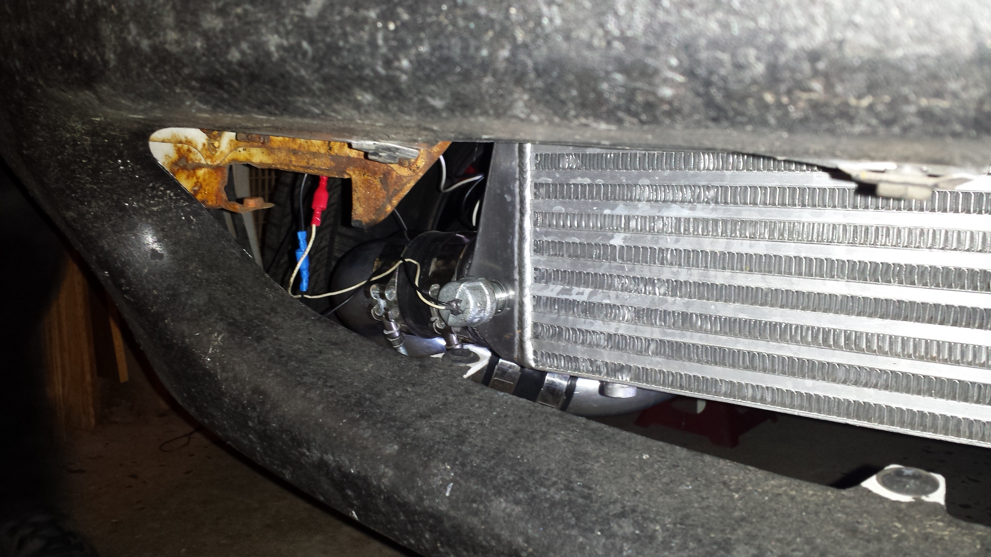 My friend dropped by with Ratchet this evening. I am impressed how well the base map for the Link runs, certainly not perfect, but totally driveable. Anyway, goals for the day were to get the IAT in and the intercooler more solidly mounted. We also adjusted some of the intercooler to throttle body piping to get it tucked up under the car rather than being the lowest thing on it.