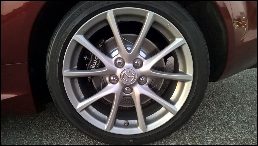 Pictures of the brakes, installed on thanksgiving and then properly bedded in about a week later. Contrary to some of the complaints on the NA/NB platform, the FM kit uses Wilwood Dynapro calibers instead of the dynalights that get all the complaints...