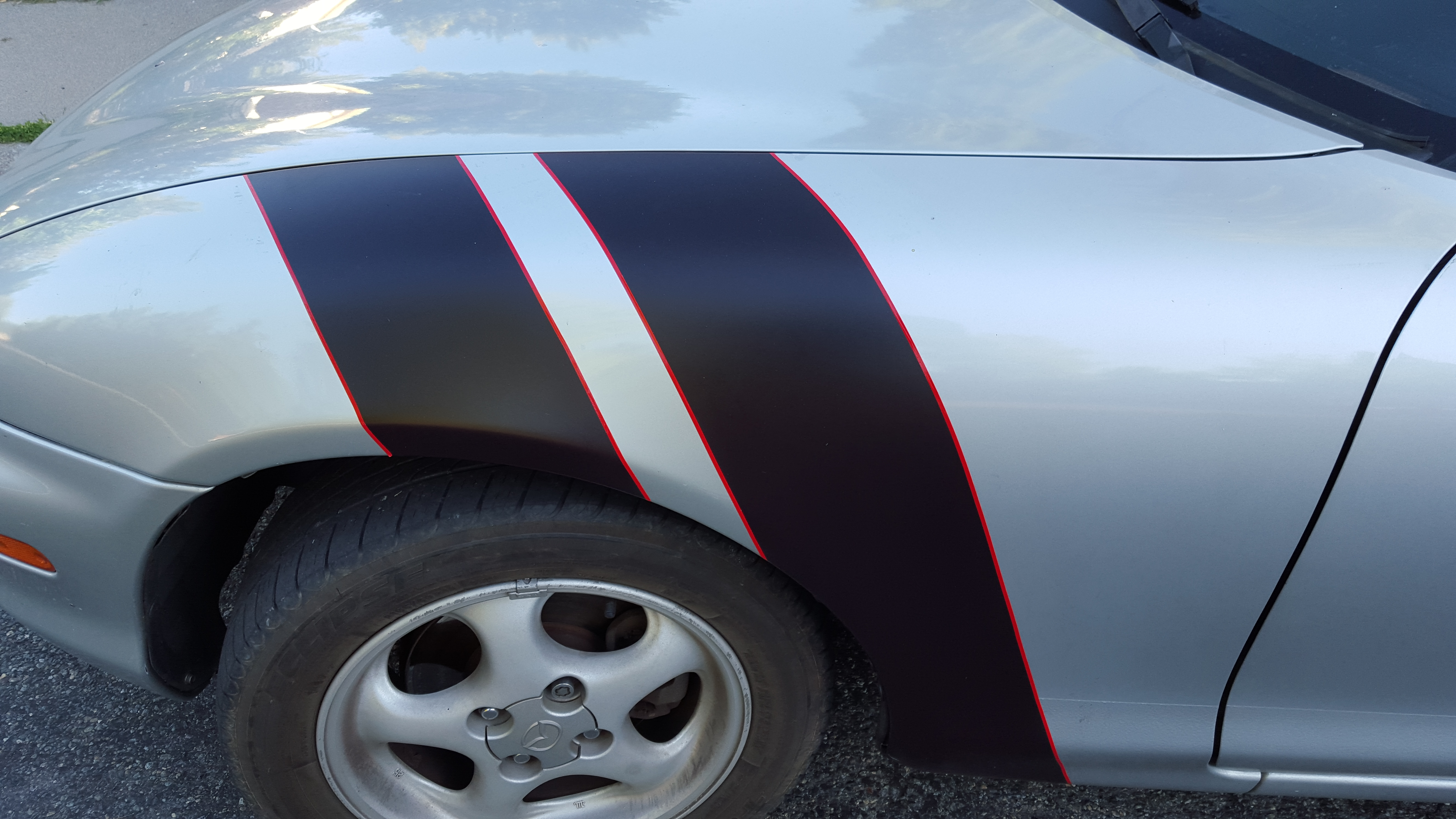 Again it was an idea, so I didn't want it to be permanent, therefore I used some black plasti dip, and some red vinyl pinstriping.