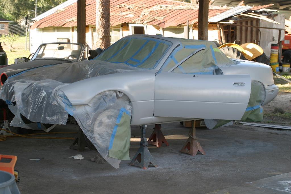 I worked all weekend on the car, and got a healthy amount done. Yesterday was pretty much a flop. It started when I dropped a whole gun's worth of paint on the floor, me, and my Dad's MG.