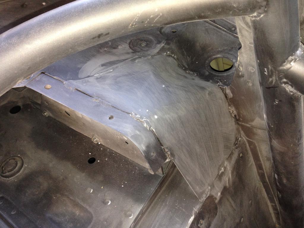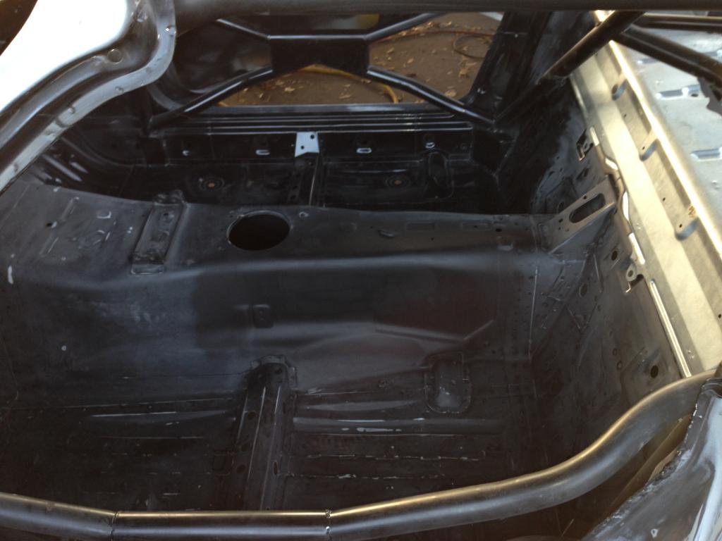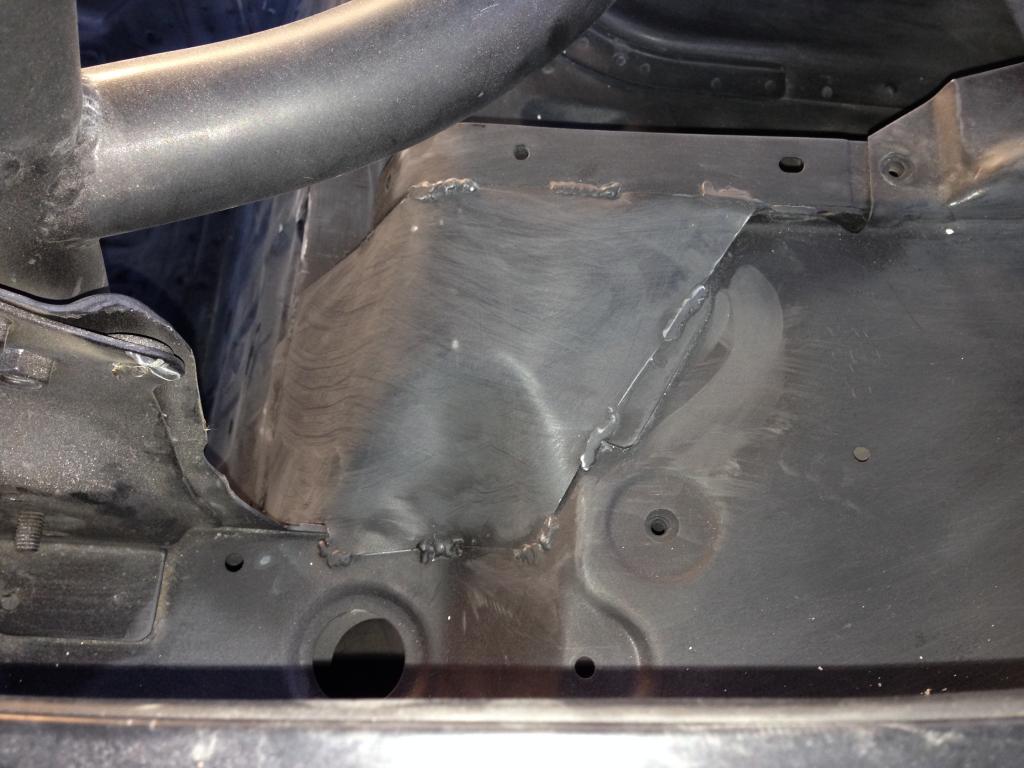 First I cut out the emergency brake hole and welded in a piece of sheet metal. After a little bit of body work.