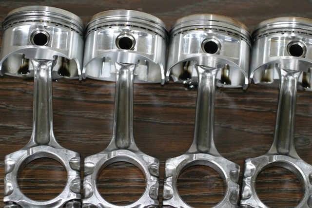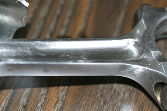 Here are a few more pics. Those are stock polished rods. Pistons look good, and are reusable. I may use them in another motor with some Eagle or Belfab rods to get going again while I build the real motor.