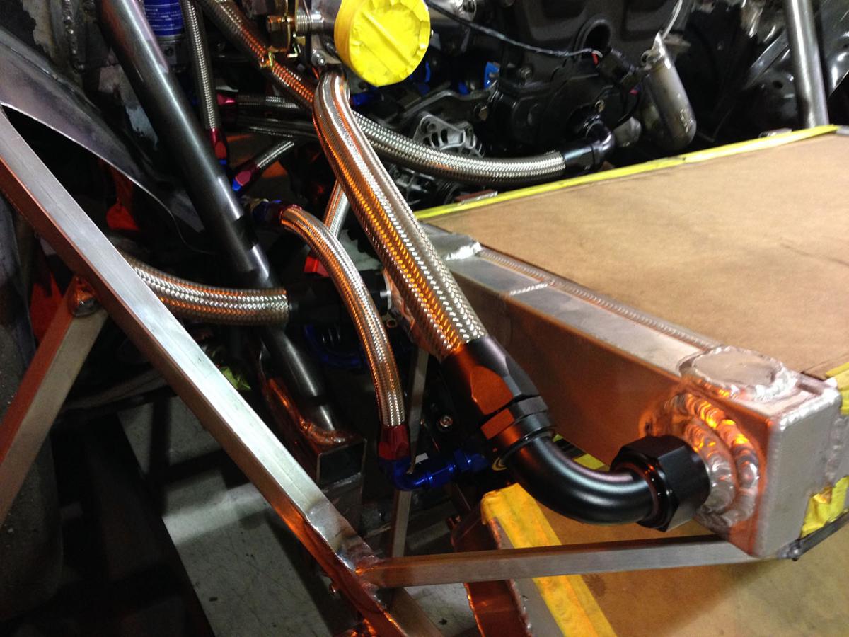 Well Mazda's engineering was not perfect as the Miata does have hot spots (mostly due to the FWD engine in a RWD config). I have about 3.5ft (let's say 4ft of hose) were it is -16, rest is stainless pipe of 1.25" and bigger. The pump does not see much of a difference in pressure drop between the two -16 and -20 sizes. In addition Mazda did just their pipe to allow for minimal pressure drop a factory pump can take. At the end of it, the packaging and size of the -20 was sub-optimal and knowing -16 work just fine I went with that option. If you search most people are running -12 or -16 with this setup. I believe -12 is too small.