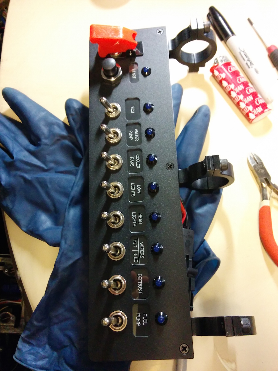 Got the switch panel and relay box wired up and it is all good to go. I was sent 1.25" mounts for the panel and the cage is 1.5". So just waiting on this until I mount it. I didn't take a picture of it mounted with zip-ties!