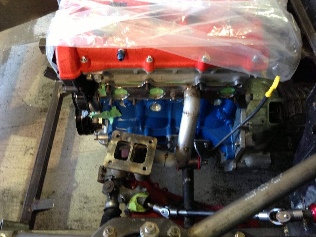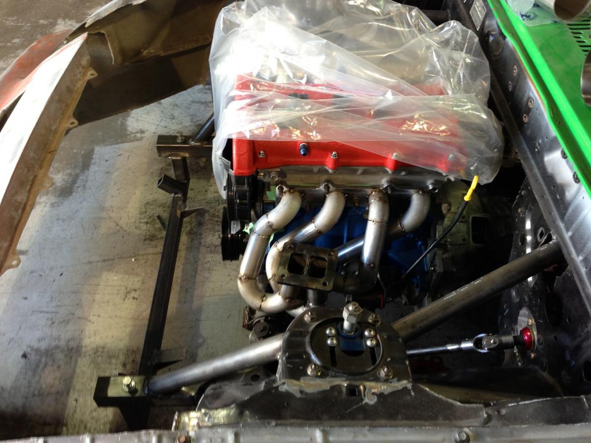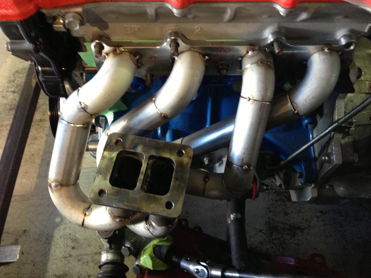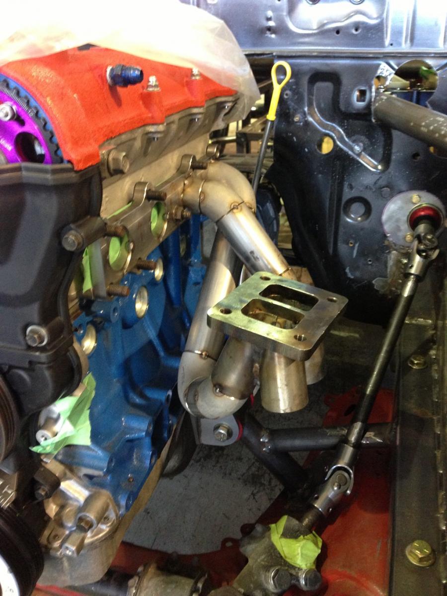 The manifold will be a twin scroll and as equal length as I can make it. The good thing is I have plenty of room between the strut tower and engine. Almost twice as a Miata!