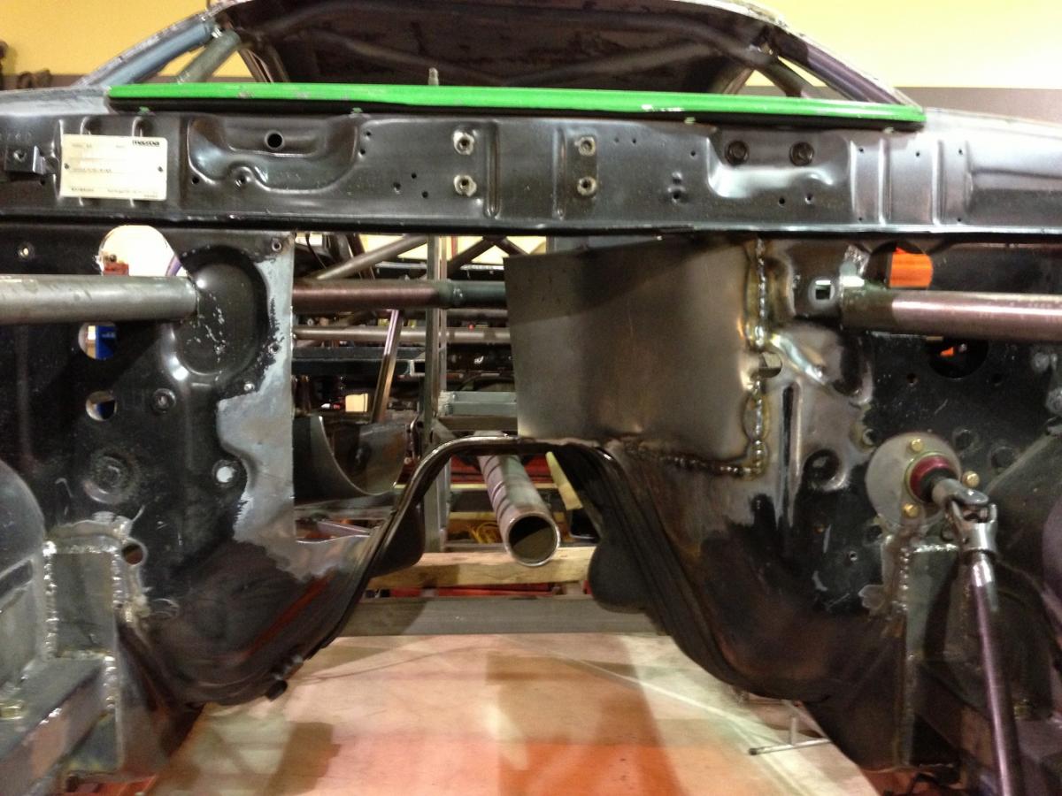 It's like most late models with 180 degree headers. The drivers compartment is only about half the car. The rest, is separated with sheet metal. The exhaust, transmission, driveshaft and all those goodies are covered and kept separate. Like alot of 80's and 90's SCCA Trans Am cars.