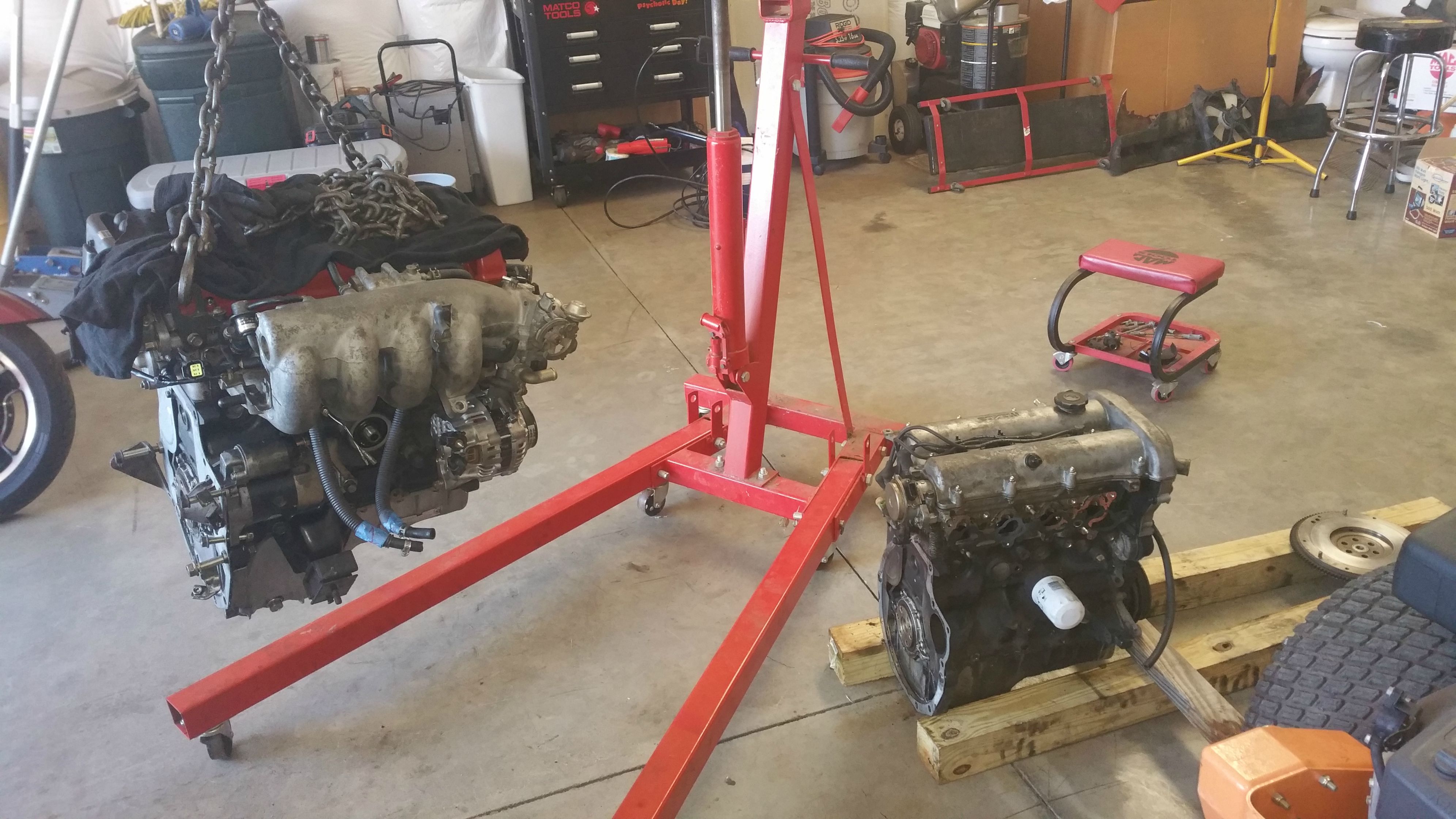 Car started with life with a crank wobbling 1.6L. I did the "Loctite 660" fix. The wobble didn't stop, but it didn't pull anymore timing so I raced it like that. The motor still made good power but short nose crank problems. So I picked up a ~100k mile 93 long nose crank engine locally. Everyone hates the 1.6 so you can get them really cheap.