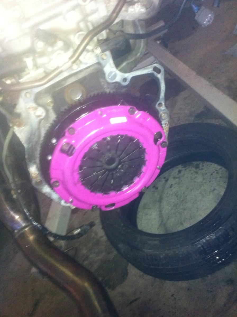 Giving up on the bushings I moved over to the engine and started pulling **** apart there. To be more specific, I started removing the transmission to do the clutch and flywheel. All went smooth. Here is a picture (for real):