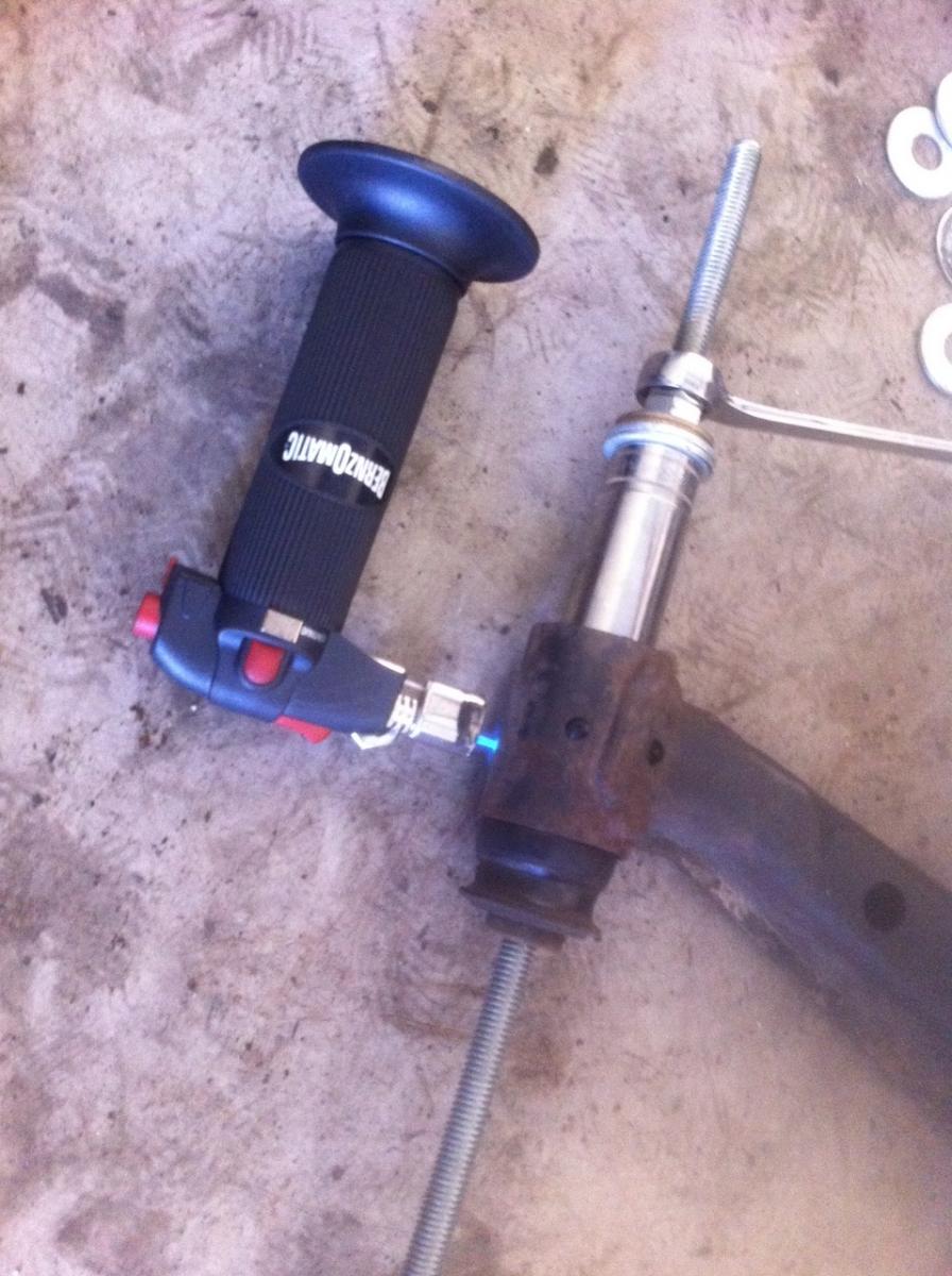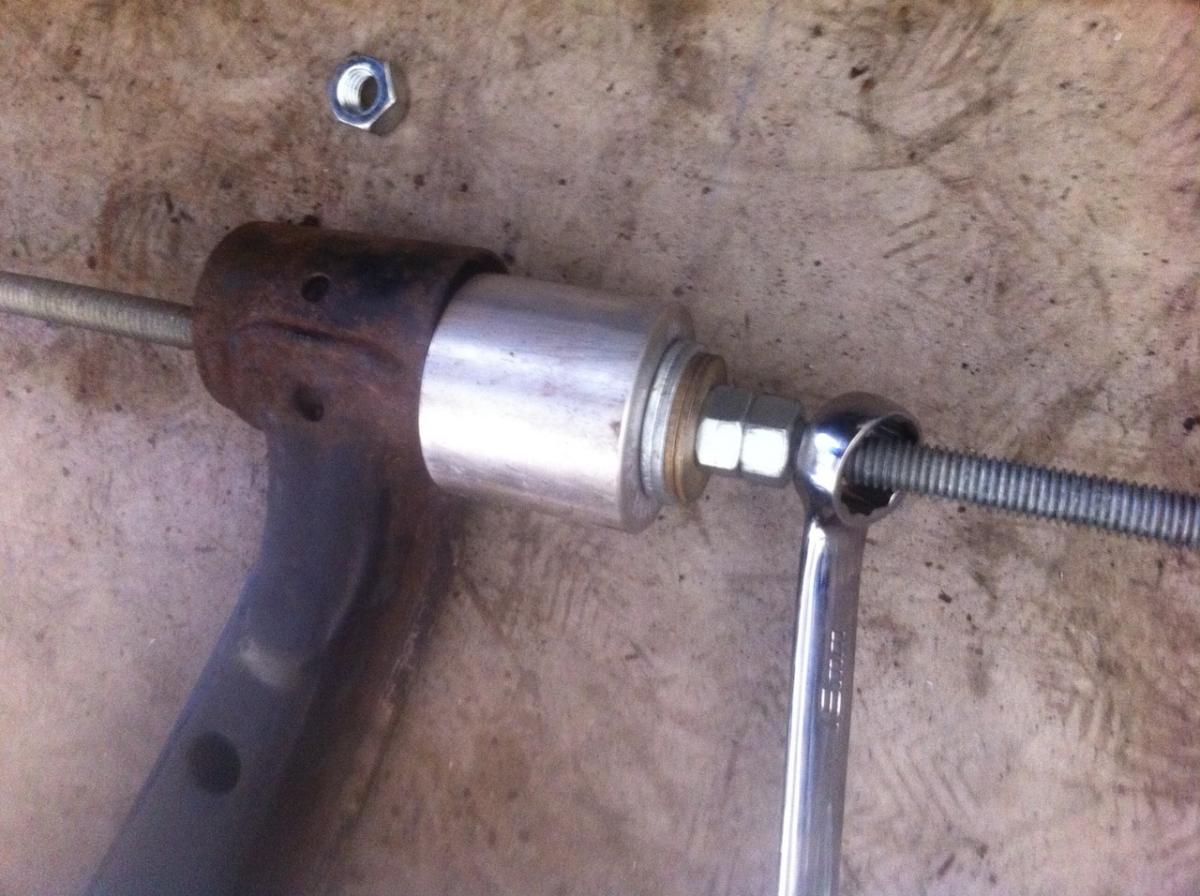 Part of the $150 also bought me some cool **** to rig up one of those bushing... pusher... things. It called for 3/8 threaded line. It seemed a bit small at the store, but that is what the tutorial stated, and I didn't want to change it up. Well I set up the pusher and got pushing. Here is a picture: