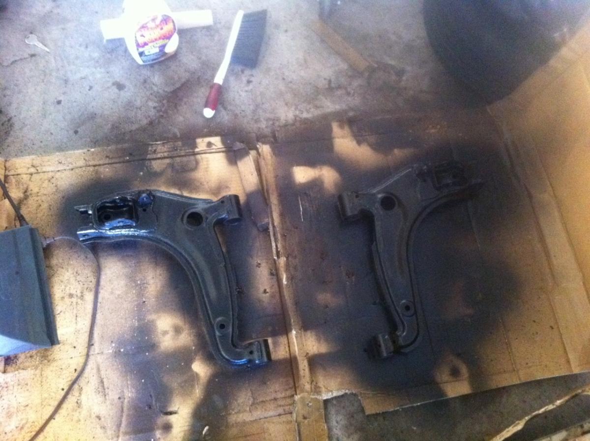 I spent a good bit of 2 hours removing the rust from the front subframe and control arms. It sucked.