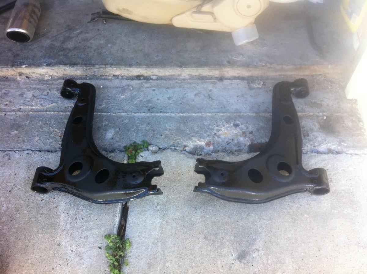 Started out with some painting and grinding today. Hit a few spots on the subframe and front lower control arms. They are looking pretty fine: