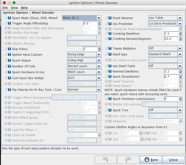 I just emailed Dimitris and he did told me that the supermiata trigger wheel is not supported for sequential injection. I'm back to batch fire now but still no go. Is there any advice on how to check correct injection, spark and spark timing?