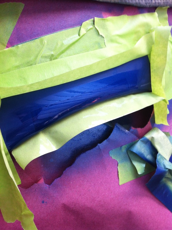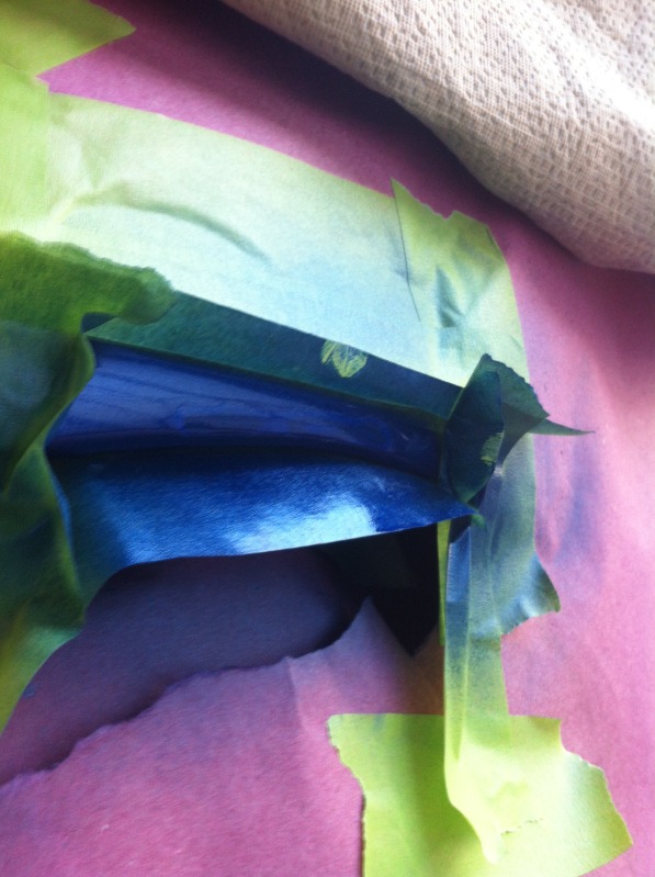 Next I did 3 coats of clear using 2k 2 part rattle can clear (its legit clear that you mix right in the can by pressing a pin). I moved the tape further and further back each time to reduce hard edges. It will all get wetsanded in and blended later anyway though.