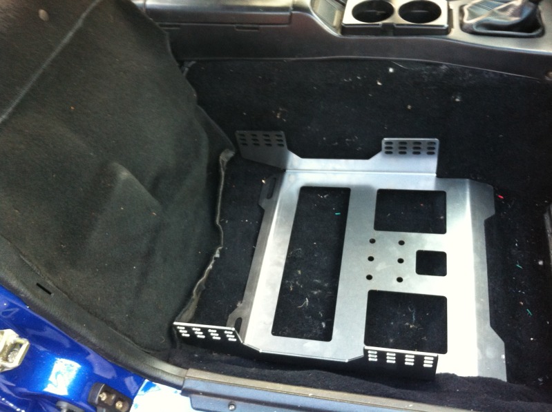 drivers seat with the holes drilled and corner trimmed to fit around the tunnel.