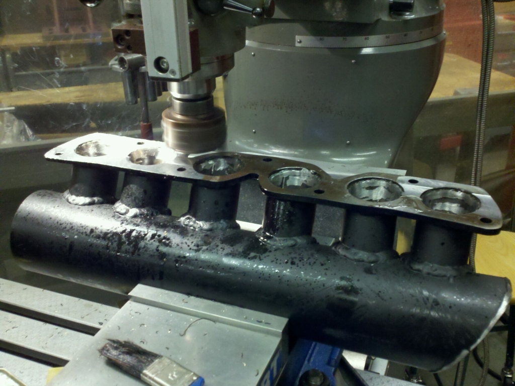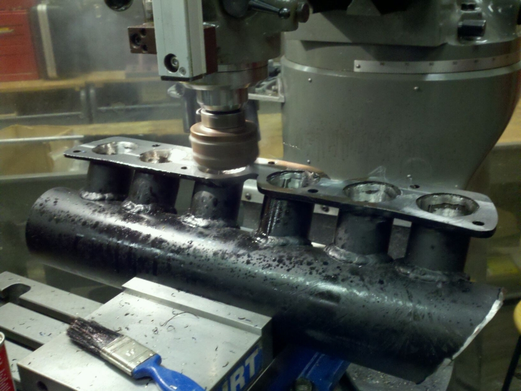 Sorry I forgot to upload the picture of the manifold all welded up. I slash cut the back of the mani to help with clearance on the booster and master as well as the brake lines. It should fit pretty good now. It is out at the machine shop getting the flange machined flat again after welding. I am waiting for the throttle body then it will be back to work.