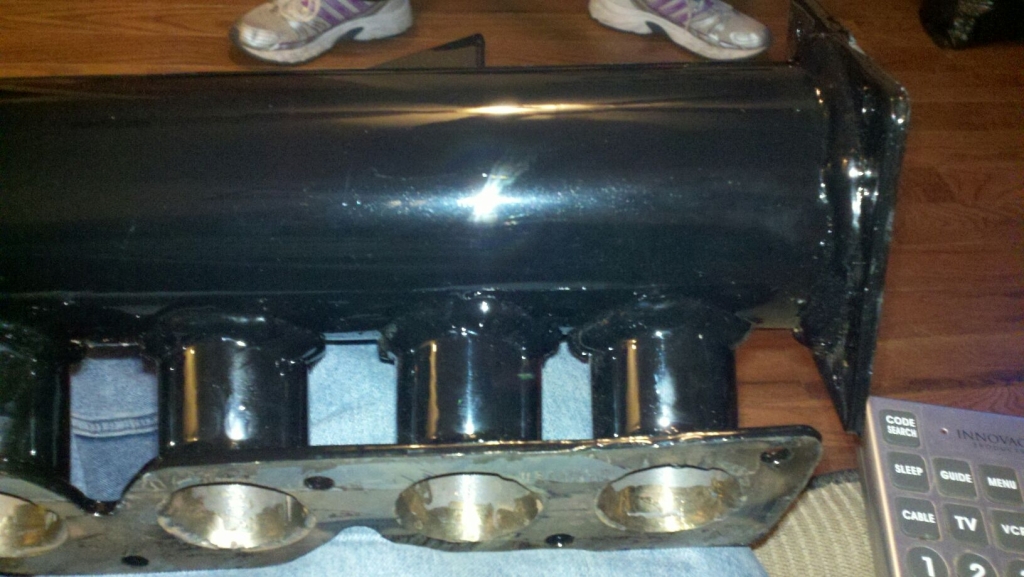 Also a small update I got all the bungs welded in and the throttle body flange on. I am tracing down some bolts then its off to the powder coater's to make it shiny black along with the mounting plate for the harness. I am hoping he can get it done in a day or two and maybe this weekend I can slap it on. I will just have to wait and see. Please do not attack my welding it is ugly and I know this but it is functional. Plus all the bungs are unseen from the top so you will never know.