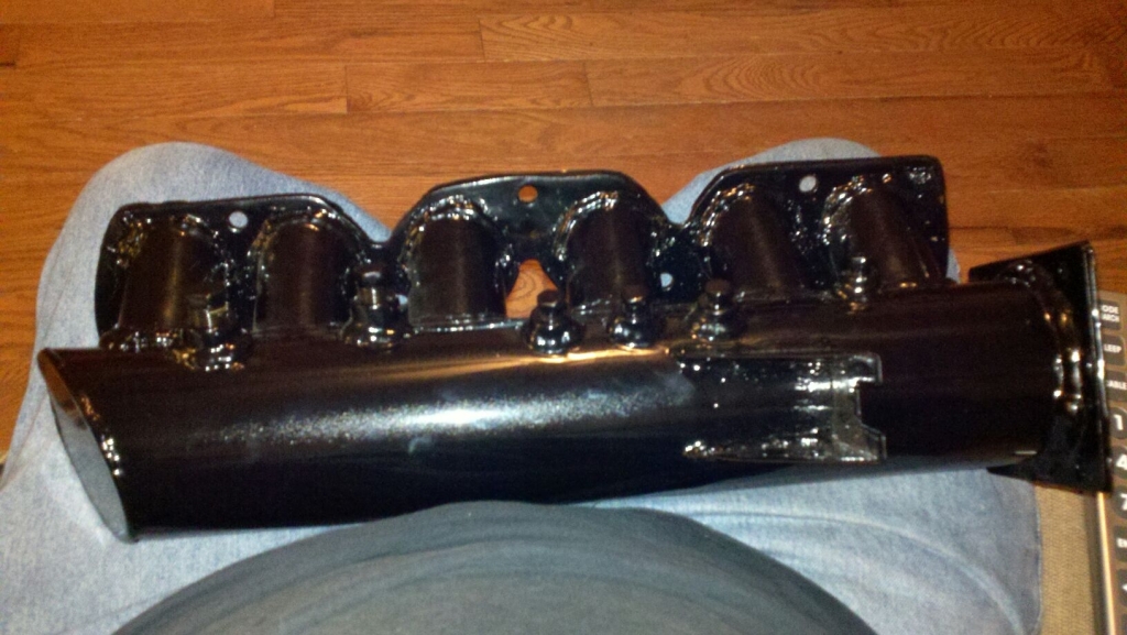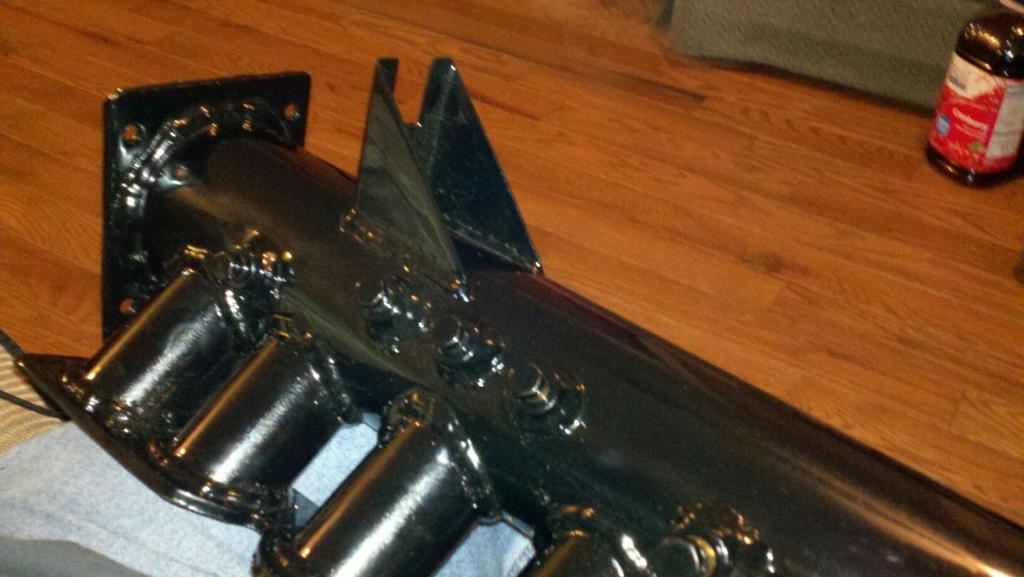 Here is a pic of the manifold with all the bungs and the bracket on it. I should be getting it back from the coater tomorrow and I will take some really good pics of the whole thing then.