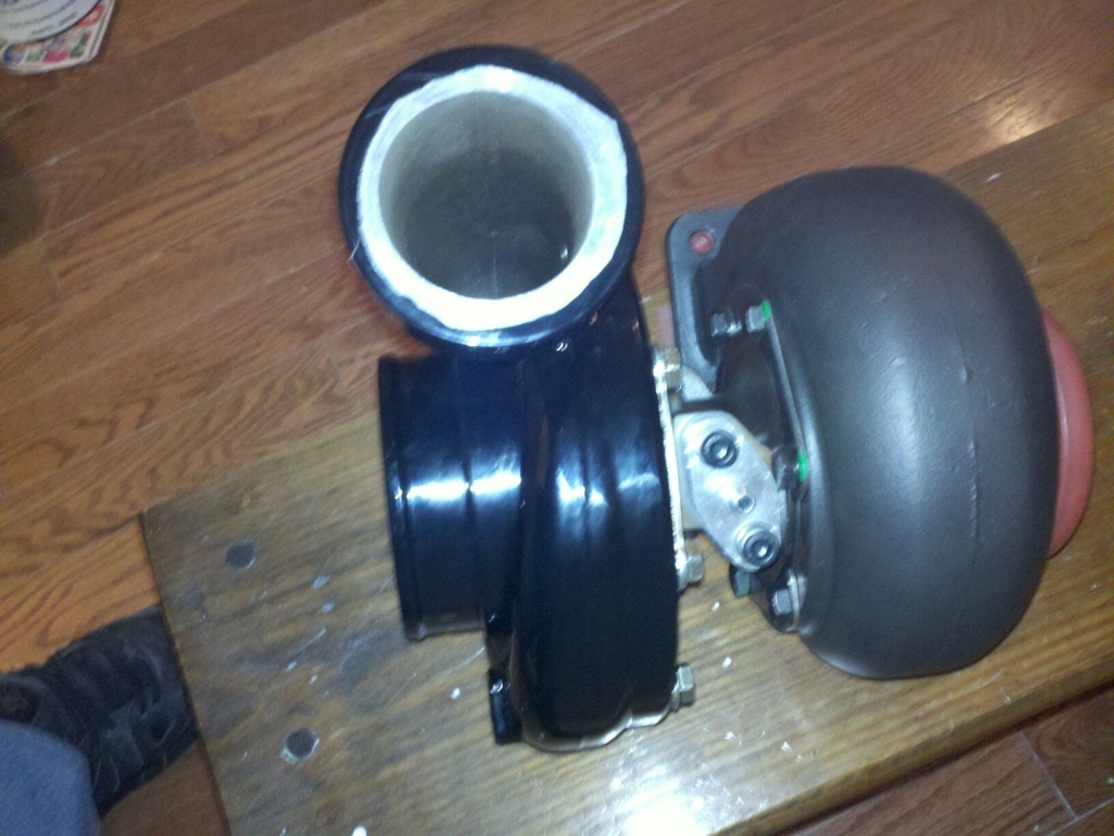 Ok so I went by my powder coaters yesterday and the controller on his oven finally crapped out. He already had one on the way so it only sets me back a day or two. The good news is because of this I was talking to him last night and I am going to have my compressor housing done in gloss black and the exhaust housing done in ceramic black. One it will make everything match and two the ceramic will help a lot with engine bay temps. When it is all done I will get pics and post them for you all.