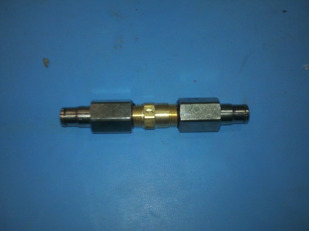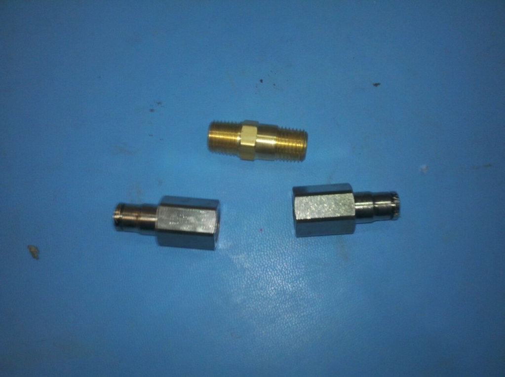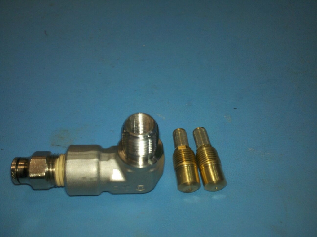 Also Instead of using the nozzle the way it comes and using a pipe fitting to lock it into the pipe I used a 1/4" npt fitting and modified it to accept a 1/8" npt fitting on the inside and milled the nozzles down so they fit inside a 1/4" npt bung. This way I can just unscrew the 90 deg. fitting and change the nozzle without having to deal with sandwitching it between the pipe. Makes me feel better and I think it looks better.