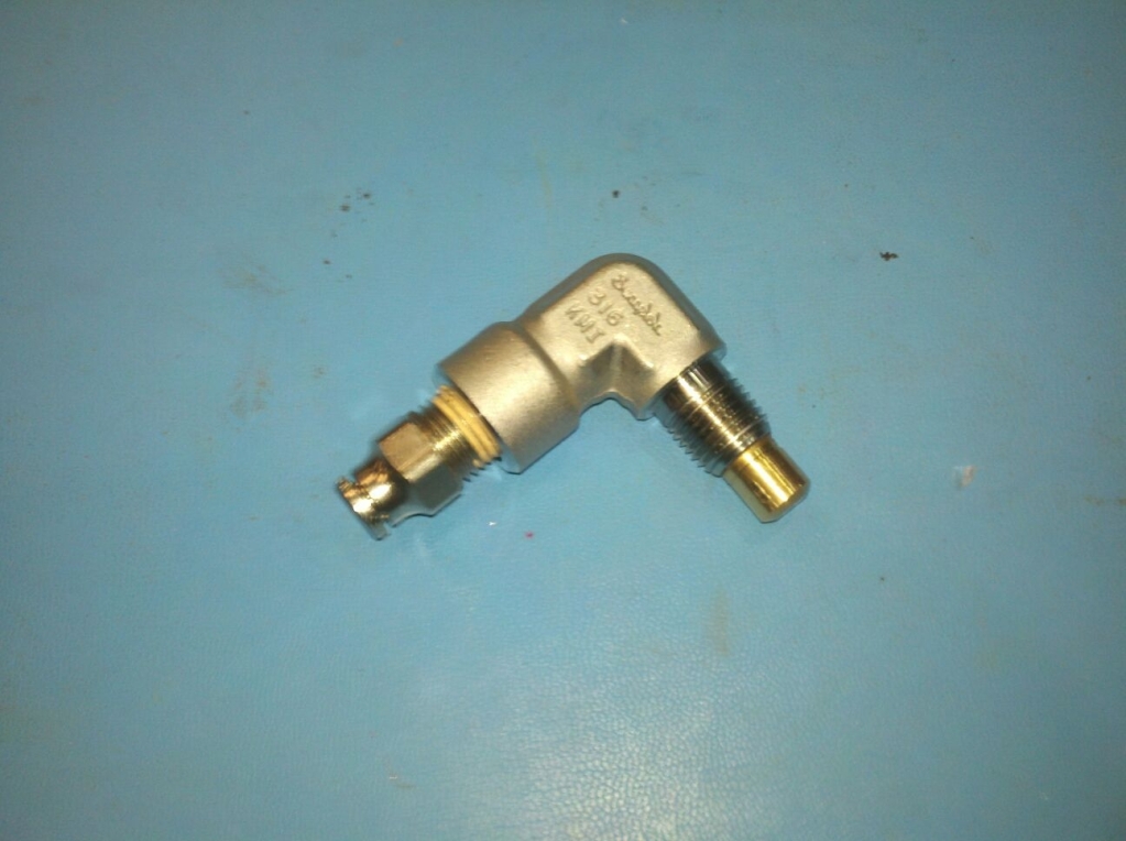 Nozzle assembly before and after assembly you can kinda see the threads on the inside of the 90 degree fitting.