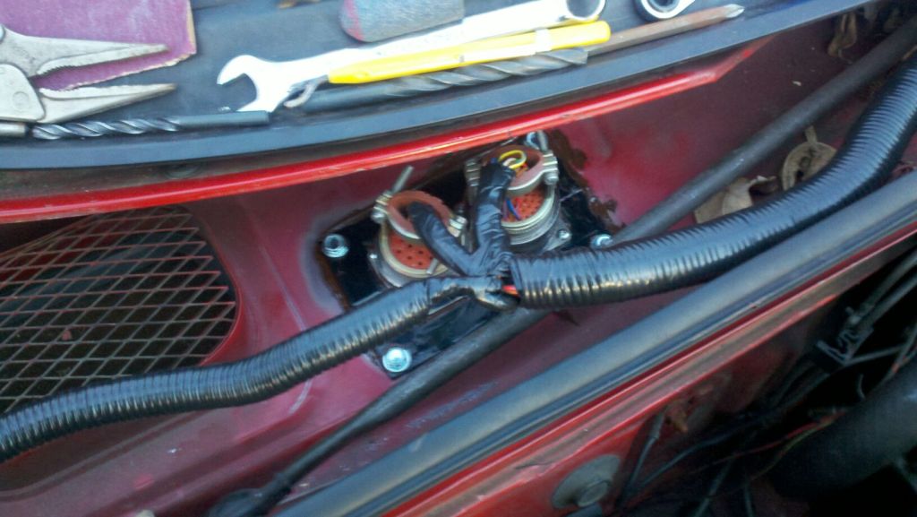 I am undecided if I will put a door on the cover or what but I know this. I was being a little baby and not wanting to put them there either until I got some encouragement from some friends. Now I love it and it will make the engine bay that much cleaner. I am going to need to do something to be able to access them just not sure what yet. Today is the first day without rain for three days so I will hopefully be cutting out a card board template for my cowl cover tonight so I can make it tom. Now that you said something I really need to think about a access door.