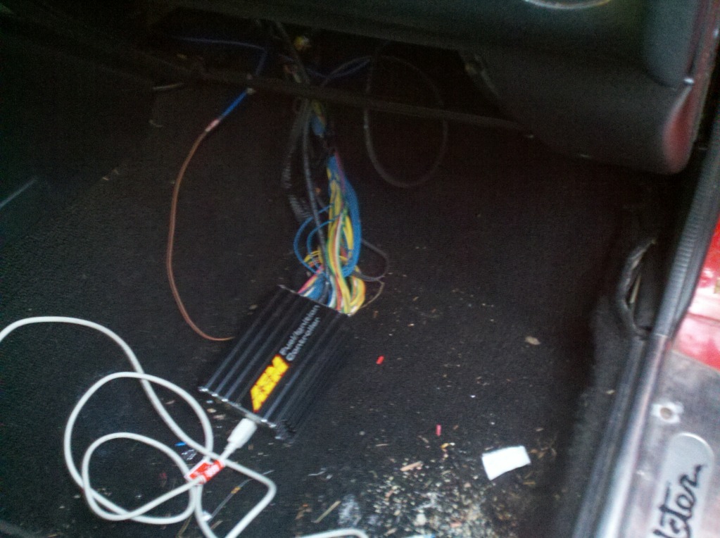 On another note I got some work done before the rain came in. It does not look like much but I managed to get all the extra miata wiring harness out of the car so only the wires that are needed are there. I ran all the lighting wires on the drivers side through the under fender area. It looks 100% better. If it does not rain tomorrow I will get the gauges all working so I can actually tune. I have everything to install my fan and fan control as well.
