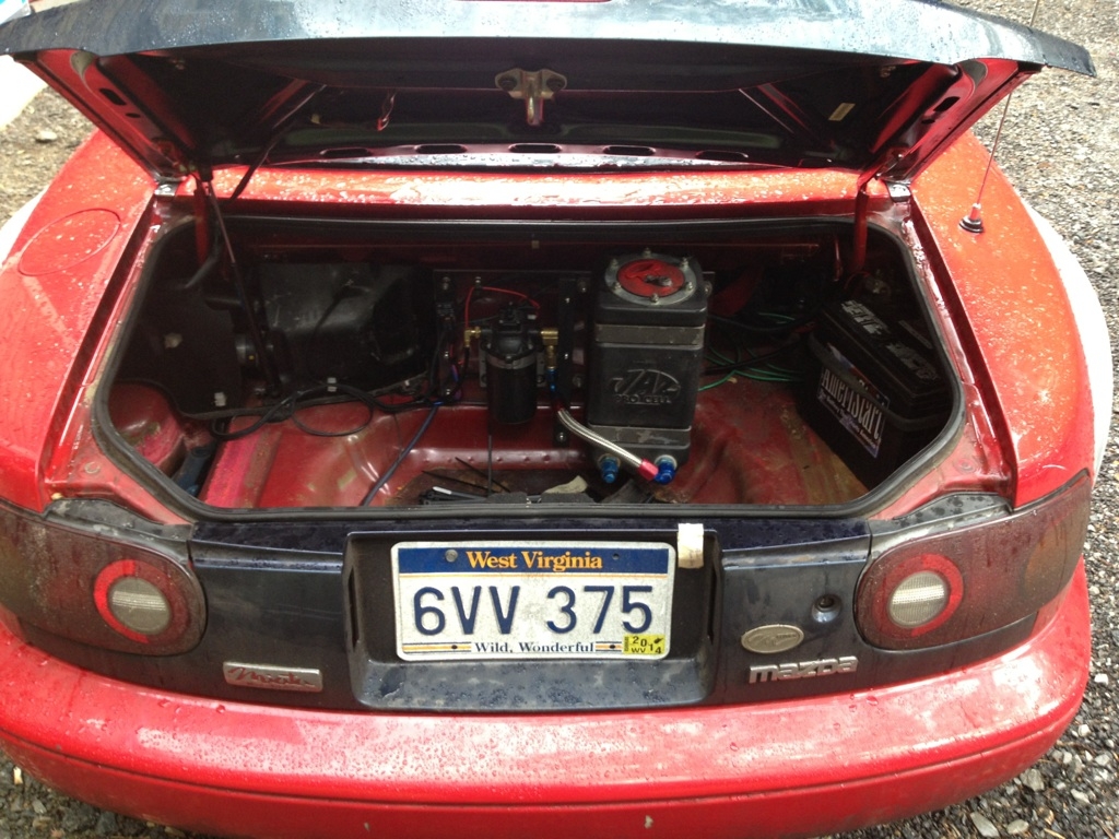 Ok so minor update. I was working on the car tonight I figured I would get a jump start for tomorrow I started to take the oil pump off to replace it when I figured out that you have to remove the oil pan to get it off lucky for me to get the oil pan off a 2j in a miata you have to remove the engine. FAIL. So tomorrow I will be taking the engine out. Not a big deal since everything is apart already. Also I was thinking of painting my engine bay while the engine was out. I am not sure on a color yet I may stick with the stock red or I may change it to white I like white to see leaks but the another choice would be black. I am not sure yet but if anyone has any input on engine bay color please add. I will post up some pics later my computer is being slow right now.